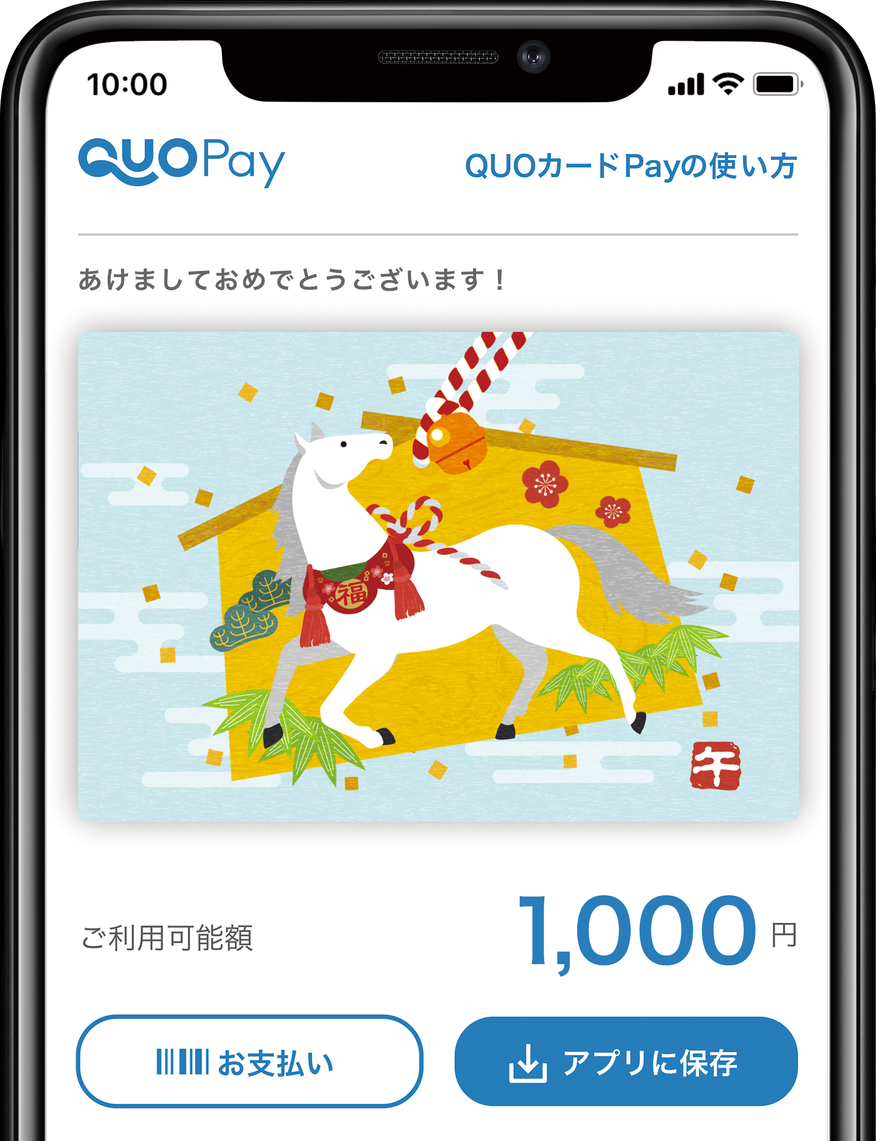 QUOカードPayでは公式イメージキャラクター「クオとペイ」と2026年の干支「午」モチーフのデザインなど、合計3種類が新登場。QUOカードPayは、利用時にスマートフォンの画面に表示されるタイトル・メッセージテキストのカスタマイズができるため、縁起の良い干支デザインとともに、1年間お世話になった方への年末のご挨拶や新年のご挨拶の言葉を添えて贈ることができます。離れていてなかなか会えない方へのギフトや、年賀状じまいをしてメッセージアプリなどで新年のご挨拶をする際に添えるギフトとしてぜひご活用ください。