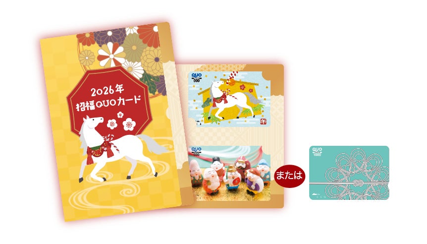 また、定番のギフトカード「QUOカード」でも同日に2026年の干支デザインと縁起物のデザインがセットになった招福ギフトセット2種をそれぞれ数量限定で発売。年末年始に日頃の感謝を伝える縁起の良いギフトとして、デジタルでのご挨拶にはQUOカードPay、対面でのご挨拶にはQUOカードと、それぞれのシーンに合わせてご活用いただけます。