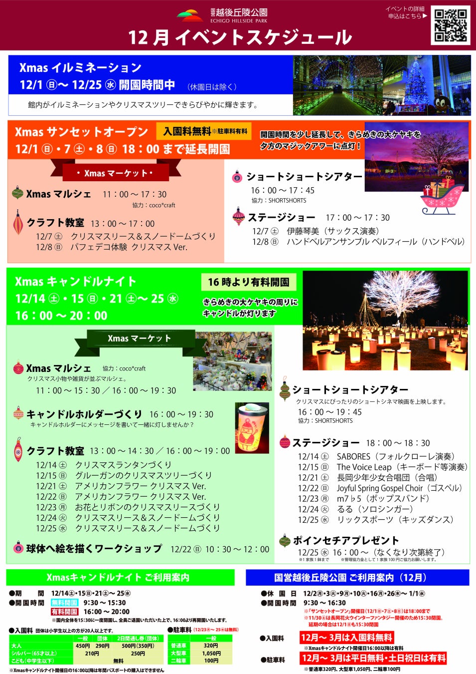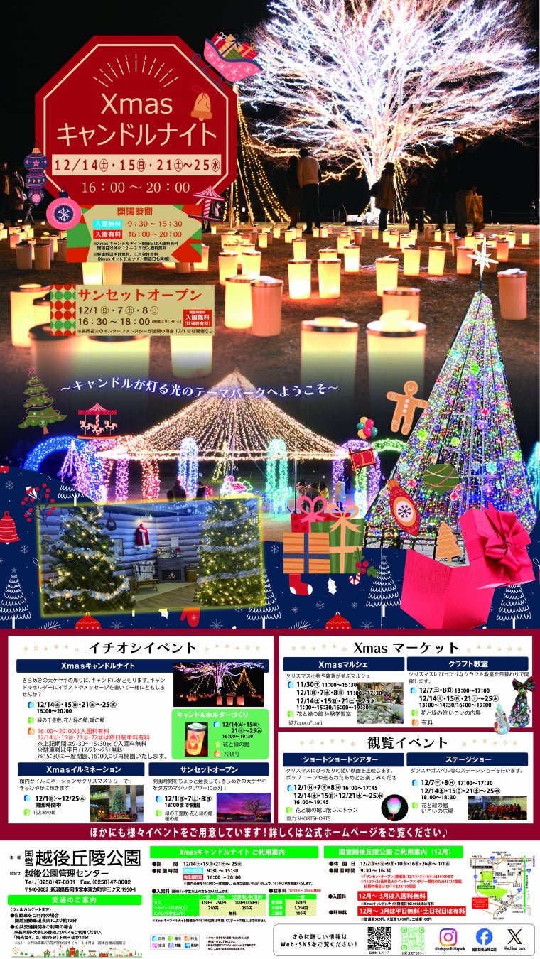国営越後丘陵公園(新潟県長岡市)では、12月14日(土)・15日(日)・21日(土)~25日(水)に『Xmasキャンドルナイト』を開催します!