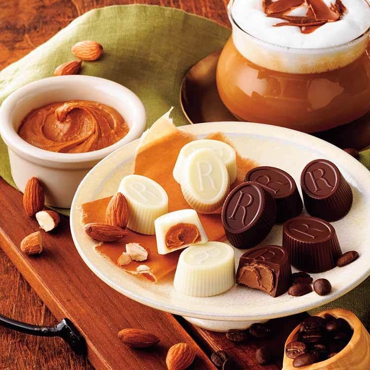 ロイズの頭文字"R"のカタチにおいしさを込めた、気軽に楽しめるひと口ショコラの季節限定の味わい、[カフェモカ]と[ホワイトジャンドゥーヤ]をひと箱に。個包装もうれしいショコラを、プチギフトにもおすすめのボックスに詰め合わせました。