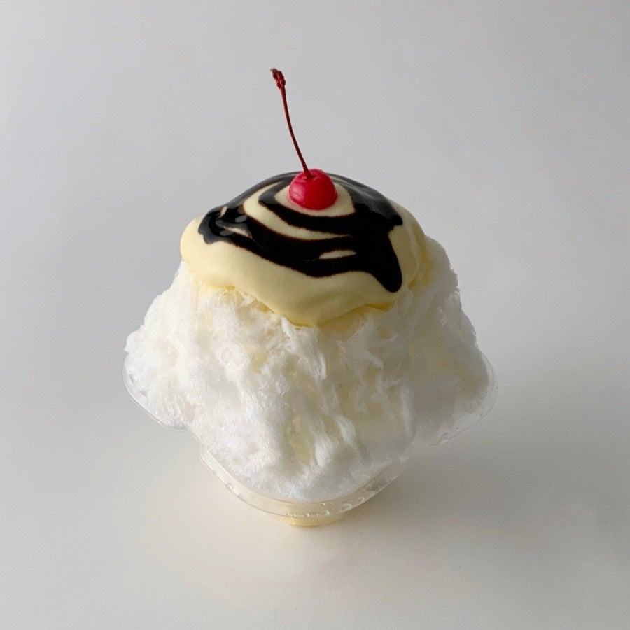 ふわふわの氷の上に5種類のソースをかけて、カスタードプリンを表現したかき氷です。味の決め手となるカスタードソースは監修店「Parlor Vinefru 銀座」で仕込み、小麦粉を使わずに仕上げました。