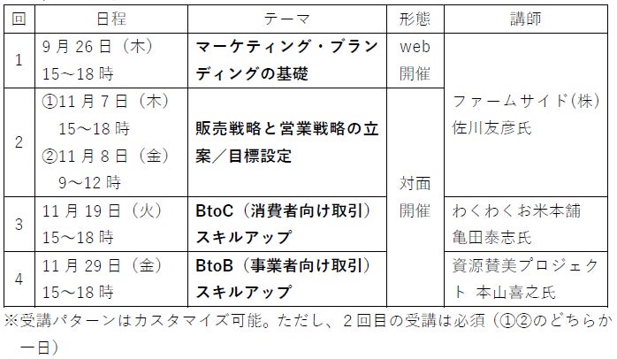 令和4、5年度に実施した、市内農業者の販路拡大を支援する「なら農業応援塾」をリニューアル。今年度は、農業界に関わる各種販路の知識を深め、販路拡大計画・戦略を立案し、BtoB(事業者向け取引)とBtoC(消費者向け取引)に分けて経営のスキルアップを図ります。農業者が自ら「こんな農業をしていきたい」というイメージを再確認しながら講師とともにアクションプランを作成し、分野に分けて実践方法を知ることで、講座で得た学びを着実に行動へ繋げられる内容としています。