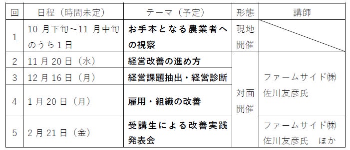 プログラム監修とメイン講師は、農業経営改善に実績のある佐川友彦氏(ファームサイド株式会社 代表取締役)