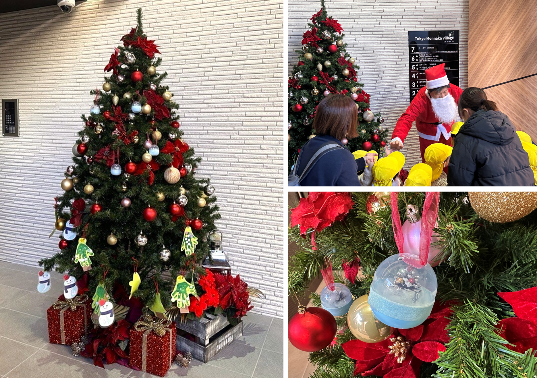 また、当ビルを運用するいちごグループのいちご地所株式会社は、日頃よりテナント様とのつながりを大切にしており、このたび、テナント様である社会福祉法人千成会 コスモス江東富岡保育園の園児の皆さまと一緒に、ビルのエントランスに飾っているクリスマスツリーの飾りつけを行いました。