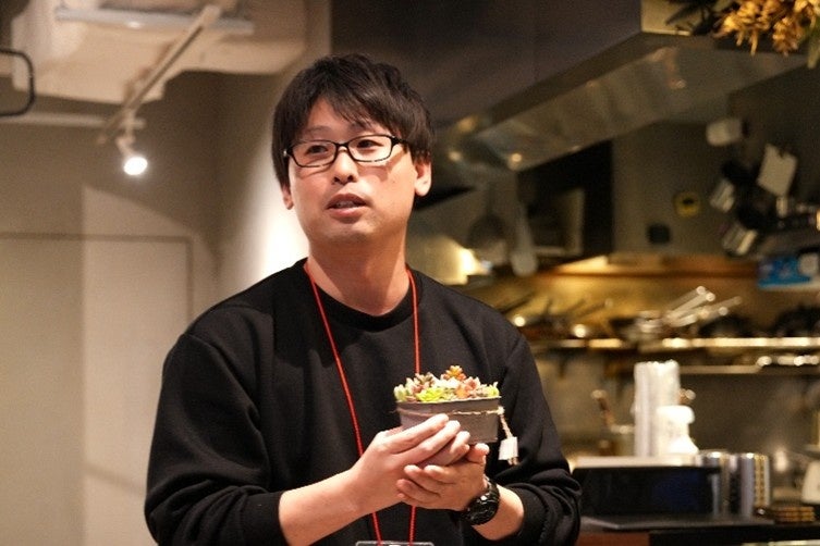 今回は『Meet the Greens』を副題に掲げ、Tokyo Monnaka Villageにご入居いただいているテナント様で、フラワービジネスを展開されているアートグリーン株式会社様にご協力いただき、ご参加いただいた企業に多肉植物の寄せ植えをプレゼントいたしました。そして、テナント様各社のご紹介を兼ね、「Green」をテーマに各々の想いなどを発表していただきました。寄せ植えは、それぞれの企業で一年間育てていただき、来年のMeet The Neighbors!にて、別の企業にプレゼントすることになっています。
