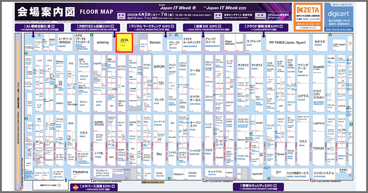 EC商品検索・レビュー・ハッシュタグ・OMOソリューションを開発販売するコマースとCXのリーディングカンパニーであるZETA株式会社(本社:東京都世田谷区、以下ZETA)は、RX Japan株式会社が2023年4月5日(水)~7日(金)に東京ビッグサイトで開催している「第32回Japan IT Week【春】」にブース出展しています。