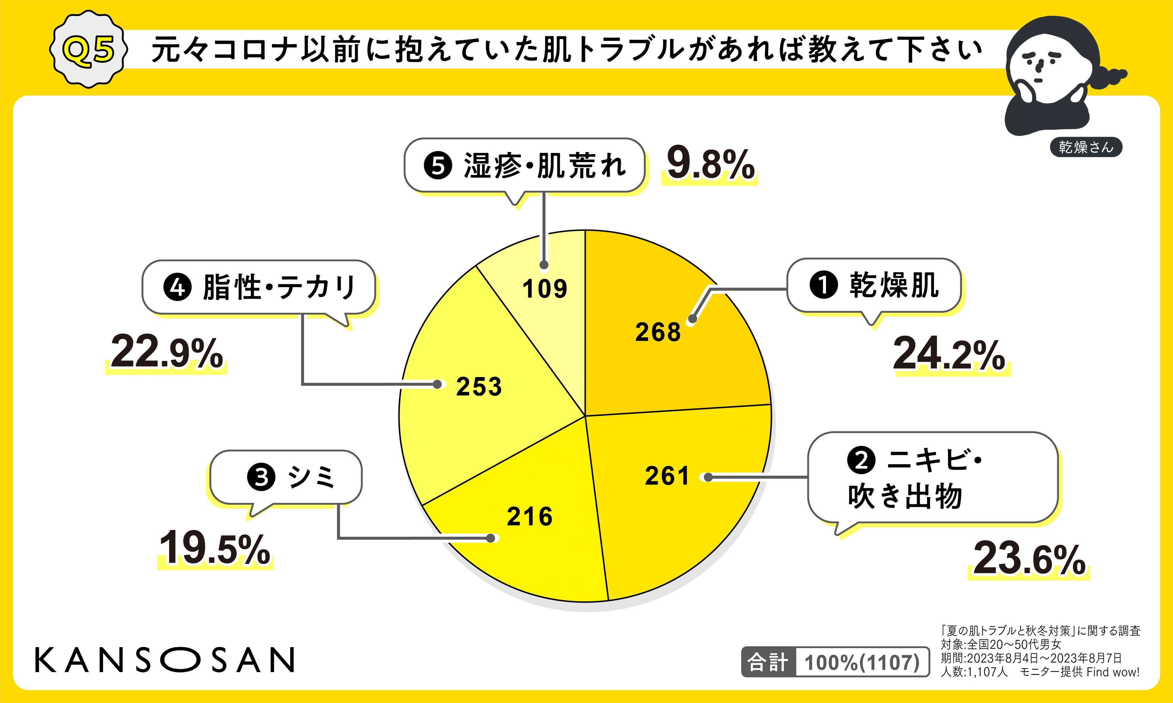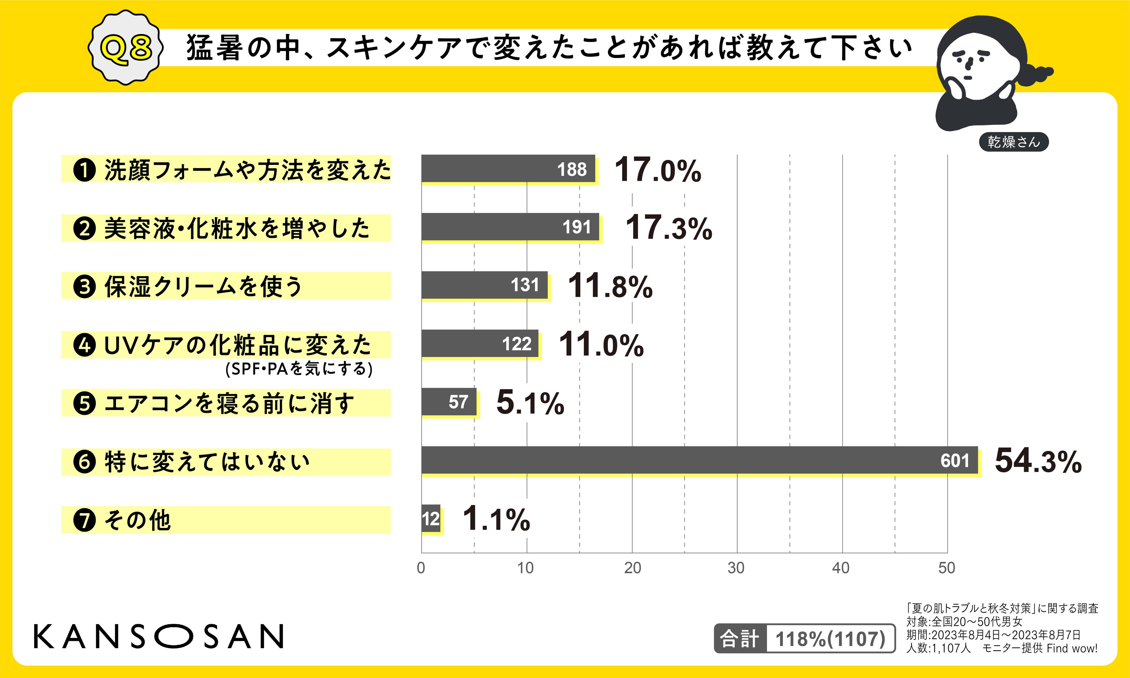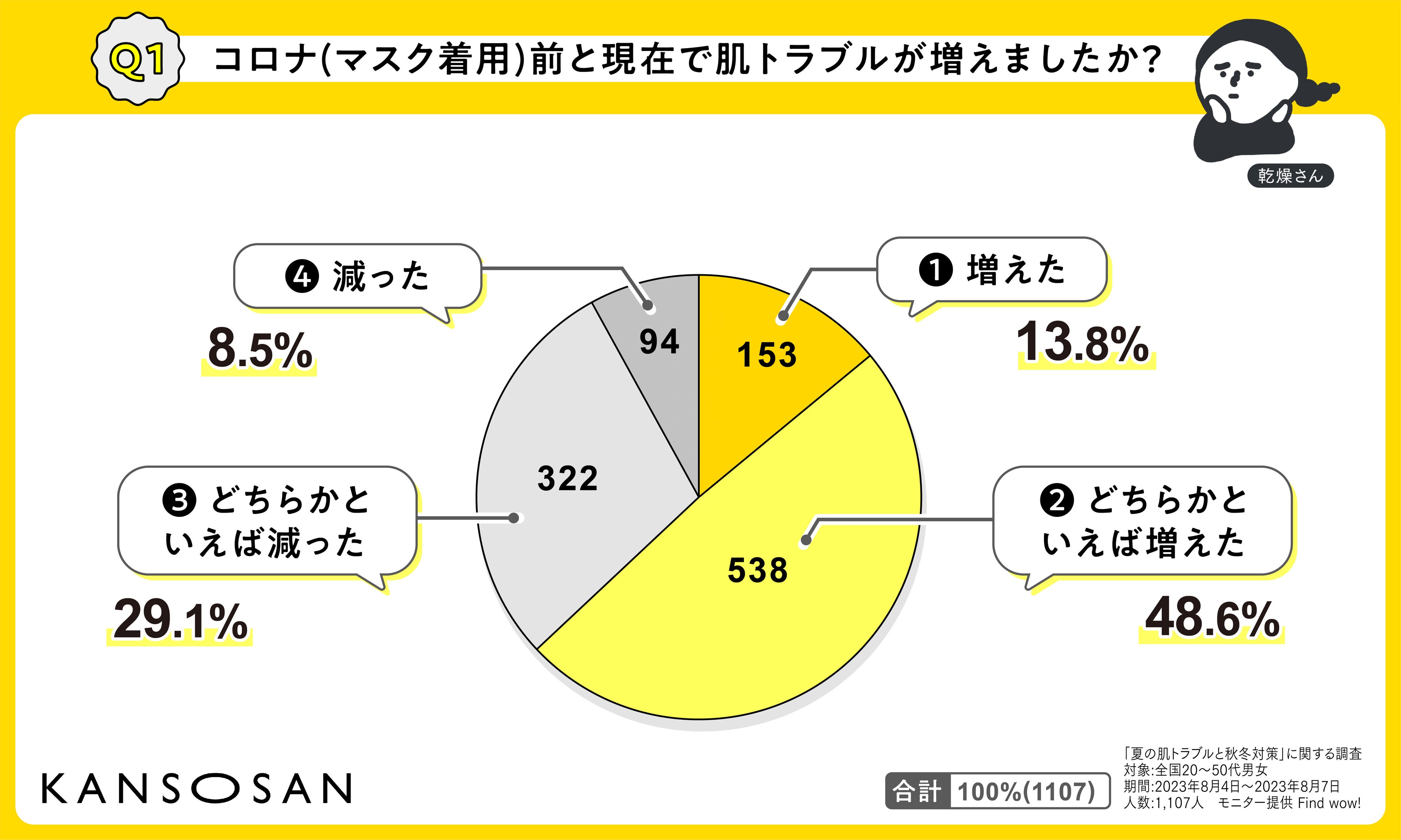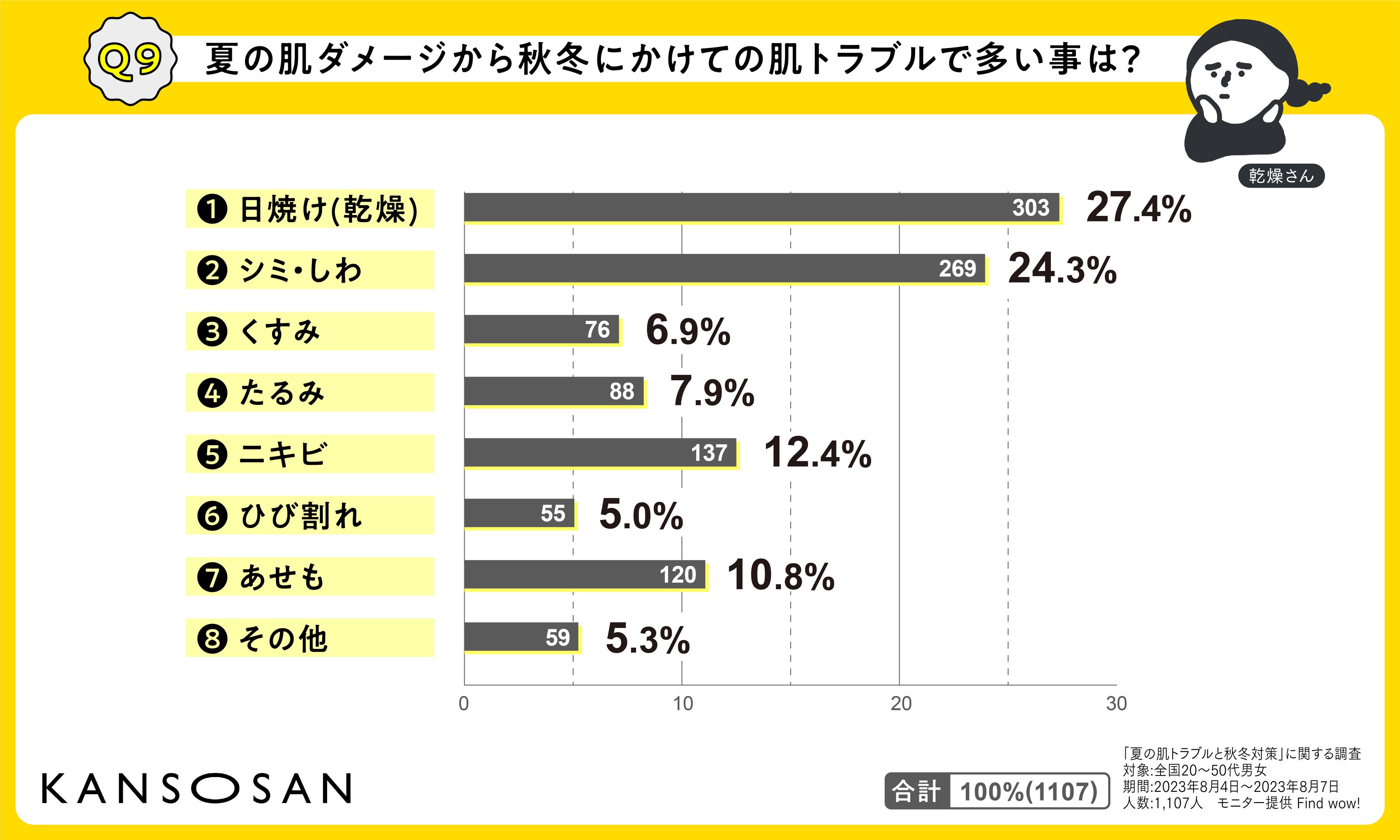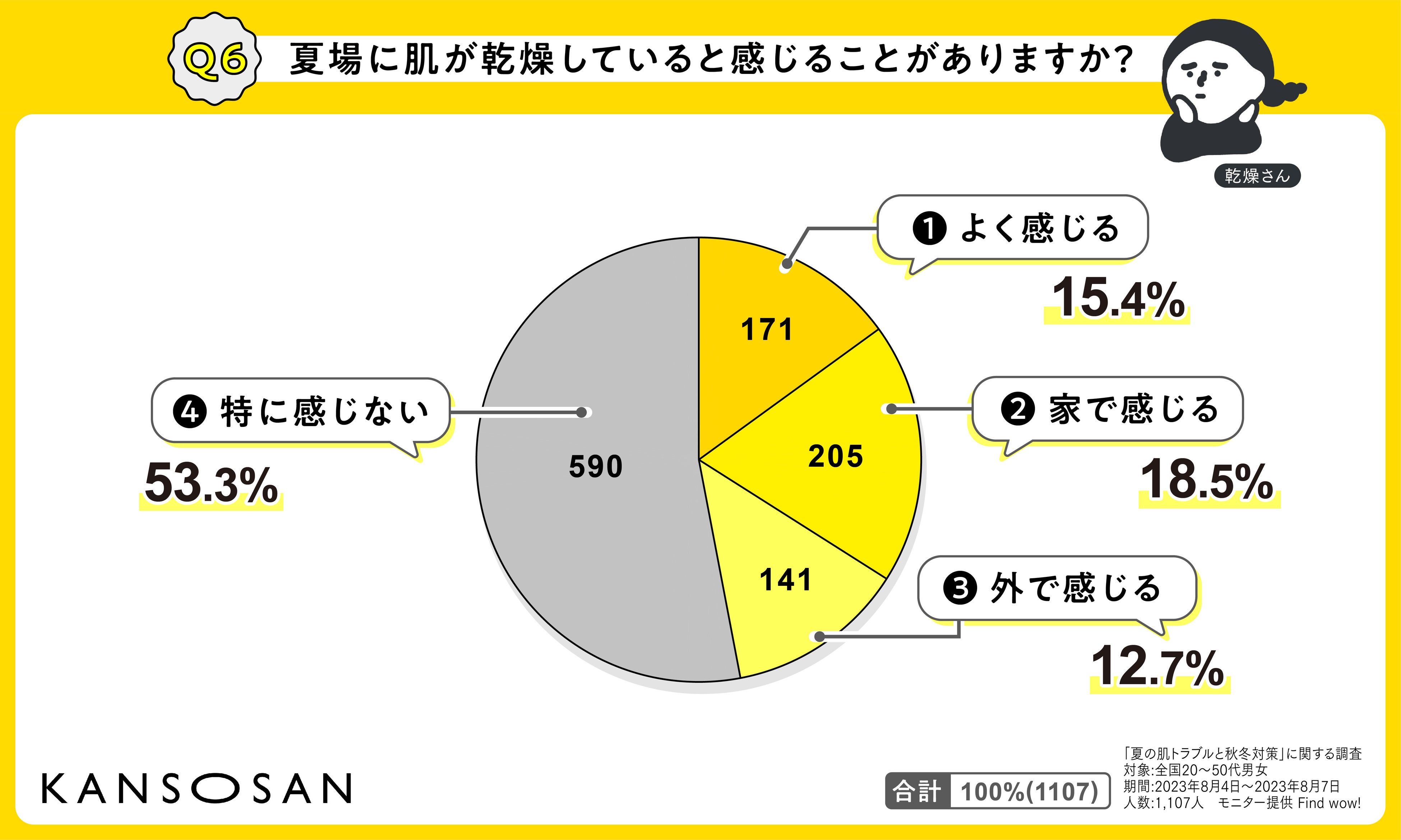 そこで、株式会社スタイリングライフ・ホールディングス BCLカンパニー(https://www.bcl-brand.jp/brand/kansosan/)は、全国20代~50代の男女1,107名を対象に「夏の肌トラブルと秋冬対策」に関する調査を行いました。