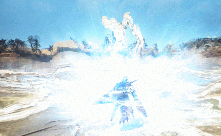 - 左槍に風を纏って前方に放出します。続いて右側の槍から火炎を起こし、大地をひっかいて傷痕を残します。