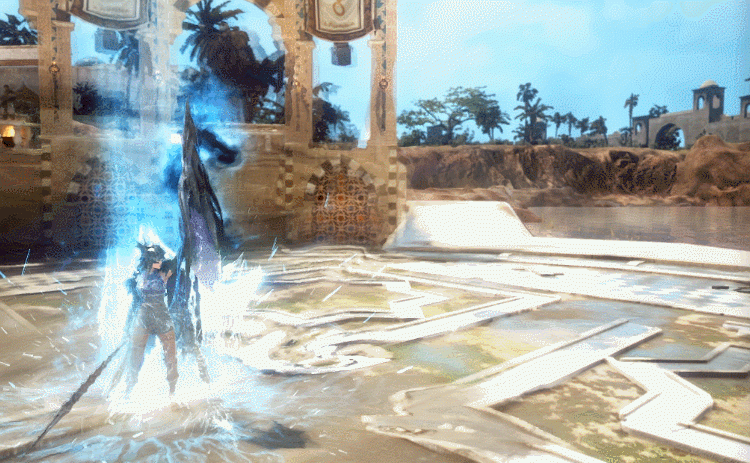 - 竜の力で左槍に風を巻きつけて前方に大地を鳴らす咆哮を放ちます。 破壊的な竜の息遣いが前方の敵を掃いてしまいます。