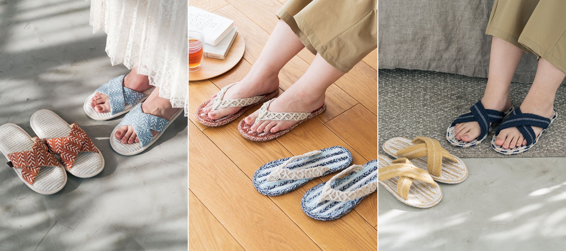 この度、順次発売を開始している2023年春夏シリーズからは、「湿気や汗による足のべたつきが気にならない、通気性の良いスリッパが欲しい」、「裸足で履いた際も、つま先が見えないようにしたい」といったお客様の声に応え、これからの季節の足元のお悩みを解決するアイテムが登場しています。