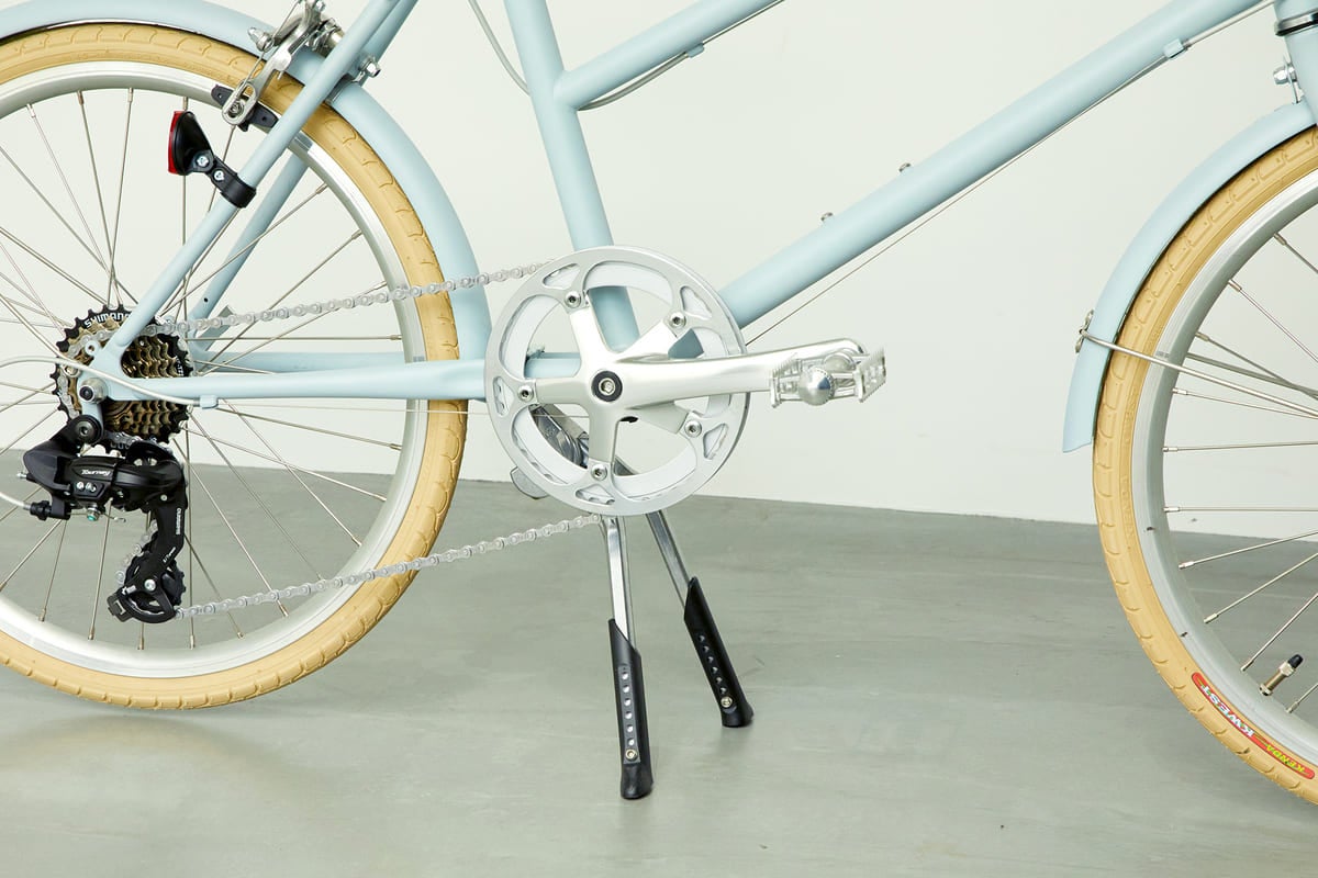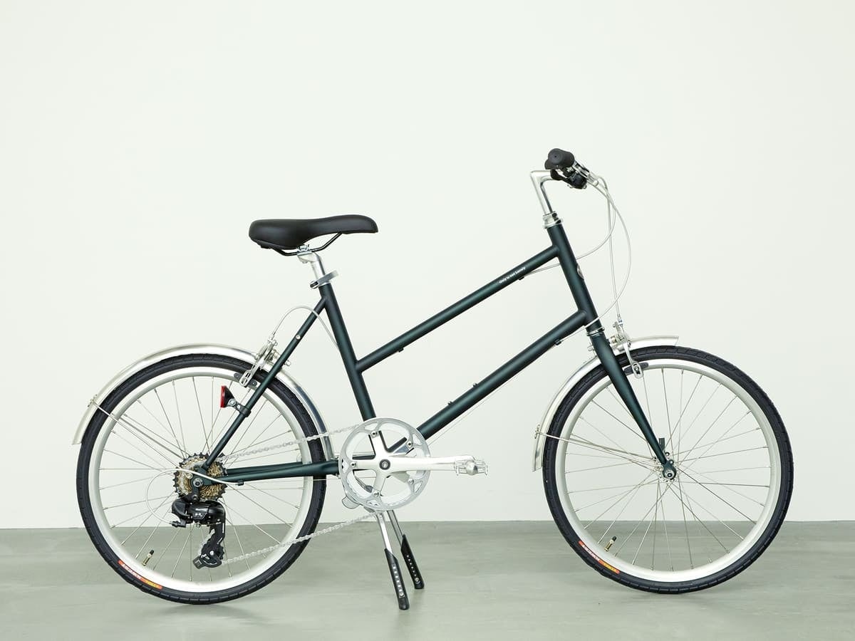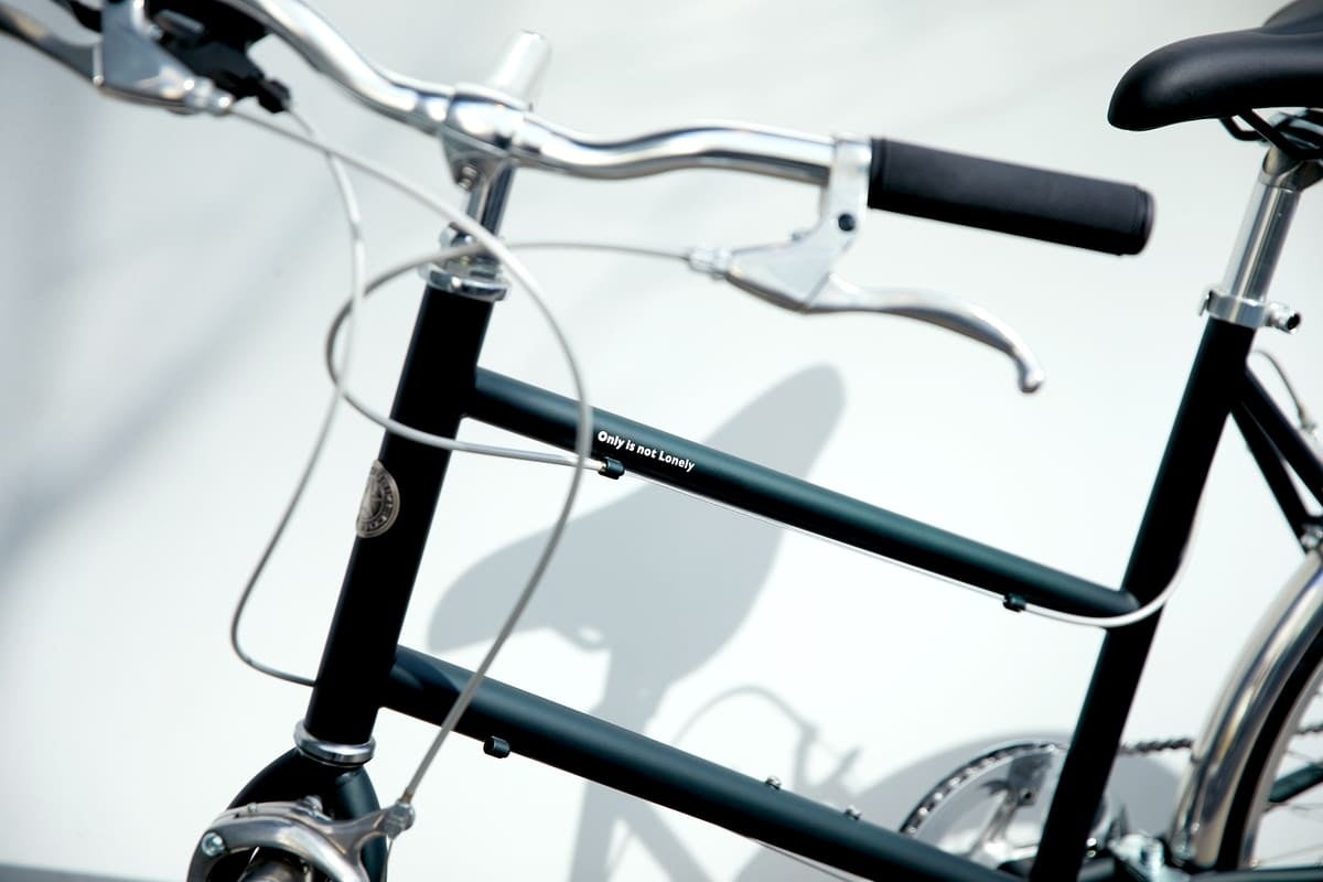 今回、発売する自転車は、「ミニベロ」と呼ばれる、タイヤサイズ20インチのコンパクトな自転車です。140cmから170cmまで幅広い身長にフィットする自転車で、家族や職場でシェアしてつかうのもおすすめ。小さなタイヤは細い路地を思い通りに曲がり、7段変速付きのため、坂道もテンポ良く進みます。色はほぼ日オリジナルカラーで、淡い水色の「Powder Blue」と、深いグリーンの「Fog Forest」の2色をご用意しています。フレームにマット加工を施し、落ち着いた雰囲気に仕上げました。雨上がりや、荷物が多いときも安心して乗っていただけるよう、泥除けとダブルスタンドは標準装備。バーには、ほぼ日が大切にしている言葉、「Only is not Lonely」のメッセージも入っています。