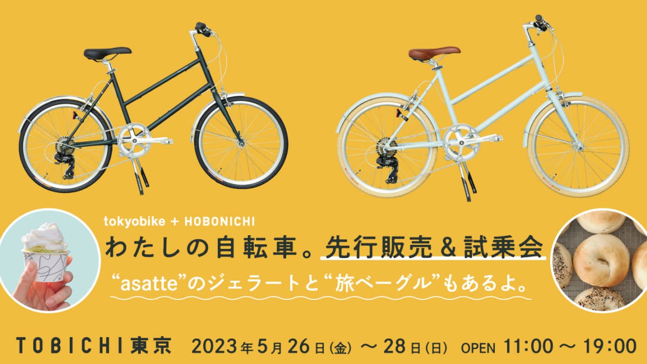 発売に先駆けて、TOBICHI東京で先行販売(数量限定)と、 試乗会を行います。自転車をより安全に、より楽しくしてくれるバイクアクセサリーやtokyobikeとゆかりのある 谷中の美味しいジェラート”asatte”と、香川県丸亀市の”旅ベーグル”も、 TOBICHI東京に特別出店してくださいます。