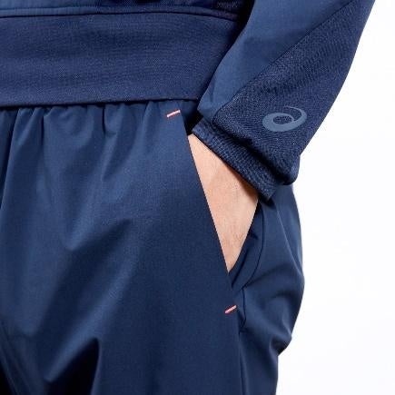 ジャケット、パンツともにストレッチがあり快適な着心地のストレッチウーブン素材及び、優れた吸汗速乾性を追求したニット素材を組み合わせています。スポーツのみならず、日常シーンでも着用しやすいように、身幅にゆとりを持たせ、裾のデザインにもこだわったタウンユースにもおすすめの仕上げに。また、両サイドには小物などの収納に便利なポケット付きで、フラッシュコーラル色の縫い糸はアクセントになっています。