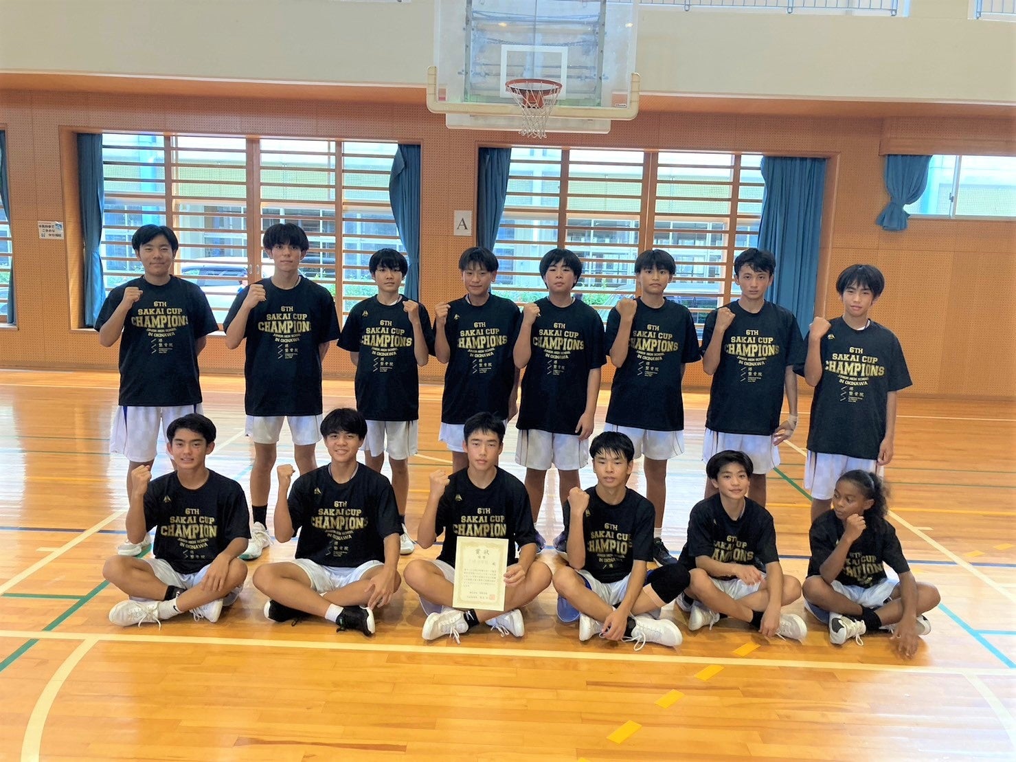 【優勝した与勝中学校男子バスケットボール部】