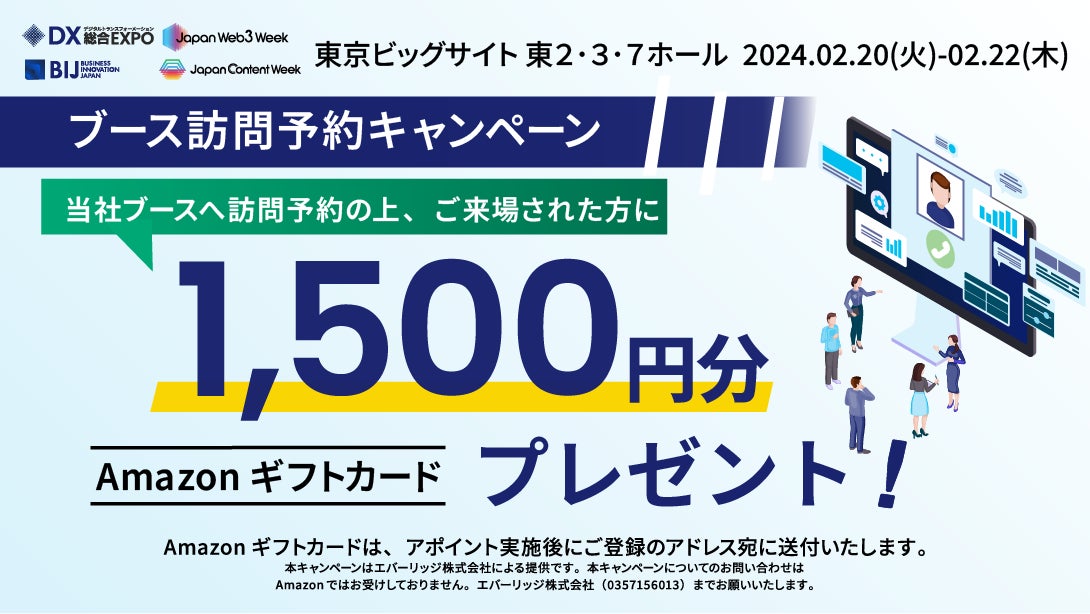 下記「無料お申し込みはこちら」より弊社ブースキャンペーンコード「expo202402」をご記入の上、アイスマイリーブースの訪問予約をしていただきますと、「Amazonギフト券 1500円分」プレゼントします!