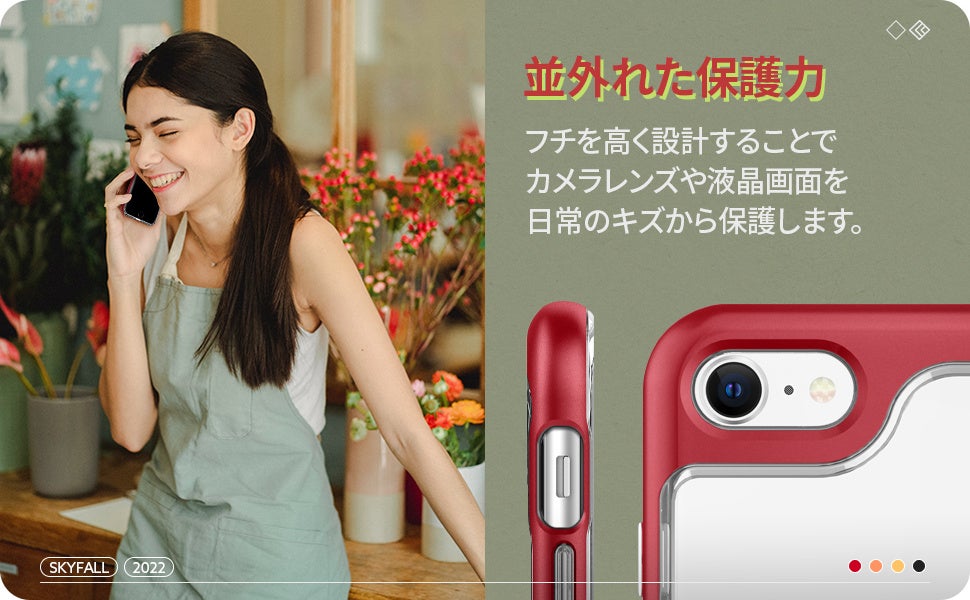 モバイルアクセサリーブランド「Caseology」では、iPhone SE 第3世代用ケース「スカイフォール」を販売開始しました。スカイフォールは、透明ケースの上にカラーバンパーを重ねたハイブリッドケースで、アメリカ、ヨーロッパ、日本で大人気なクリアケースです。背面のiPhoneロゴを楽しめながらも、カラーマッチング抜群のハードバンパーでデバイスをより輝かせます。iPhone SE第3世代の予約開始記念、3月17日まで300円OFFクーポンをAmazonにて配布します。