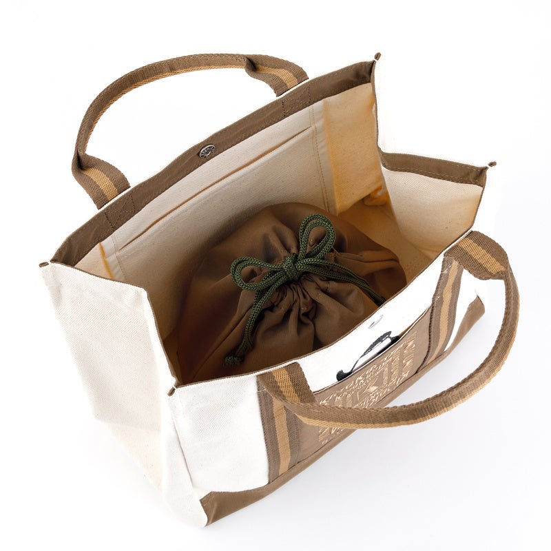 バッグには取り外し可能な保冷巾着が付属しているので、ランチやピクニックにも持ち歩けます。単体で使用できるため、お気に入りのエコバッグと合わせることで、用途の幅が広がります。