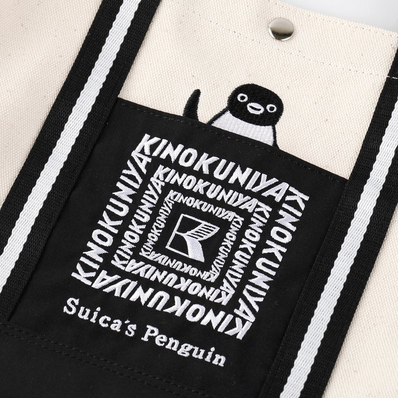 紀ノ国屋とSuicaのペンギンがコラボした、大人の女性にぴったりのランチバッグ。ポケットから顔をのぞかせる刺繍のSuicaのペンギンが愛らしく、同じく刺繍であしらわれた紀ノ国屋ロゴと組み合わさることで、かわいらしさと上品さを兼ね備えたデザインに仕上がっています。