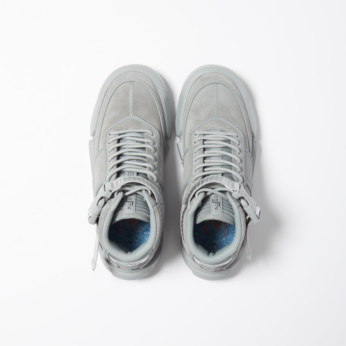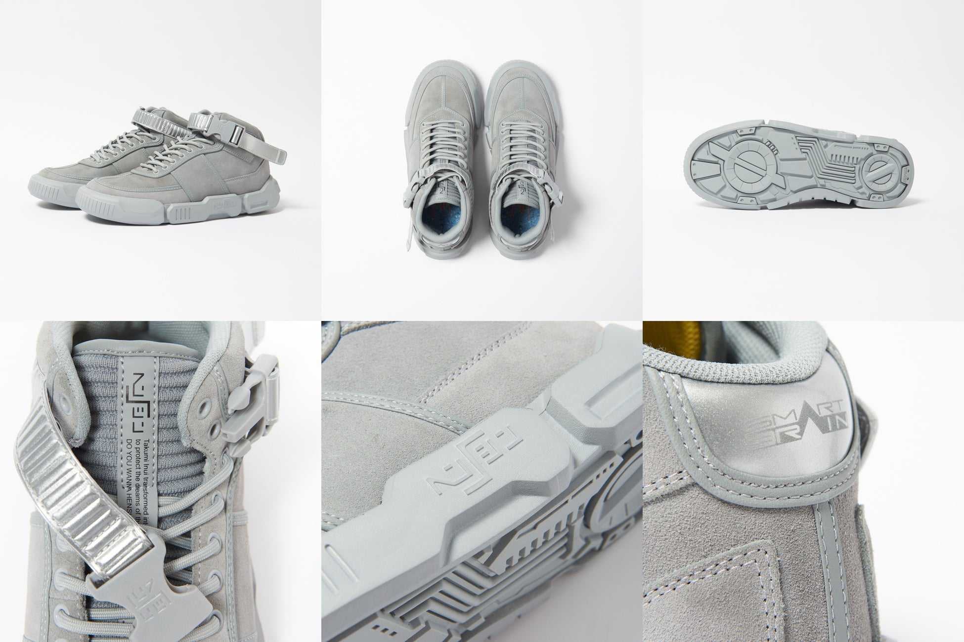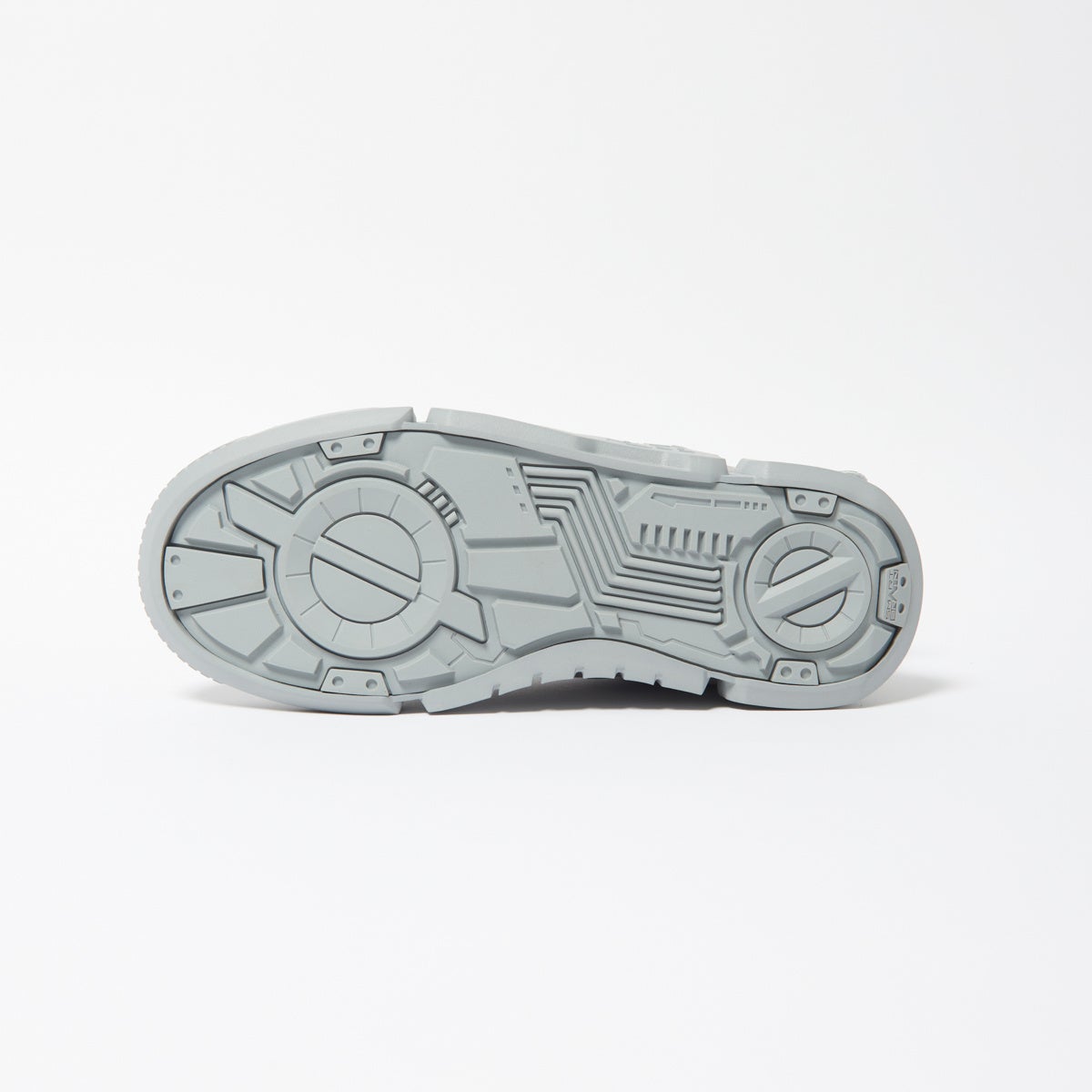 ミッドカットに存在感のあるソールを組み合わせる事で生まれた圧倒的なガジェット感を保ちつつ、ウルフオルフェノクの質感を思わせるスウェード、灰色の単色使いで、コーディネートもしやすいスニーカーに仕上げています。