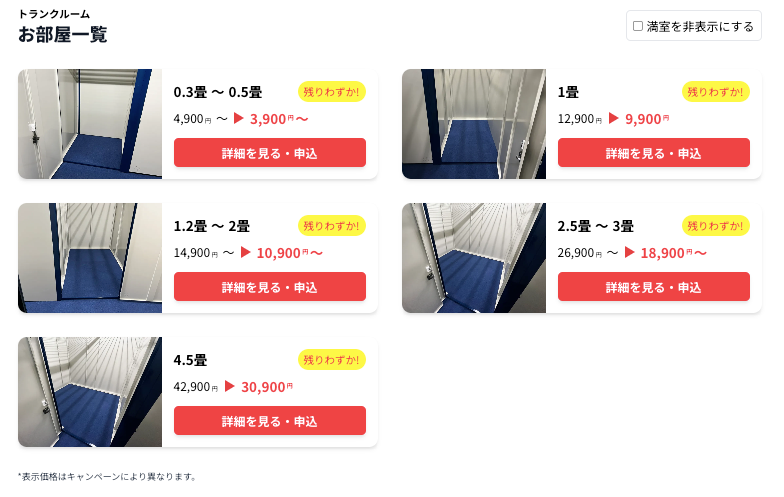 トランクルームは皆様の大事なお荷物を預かる場所でございます。