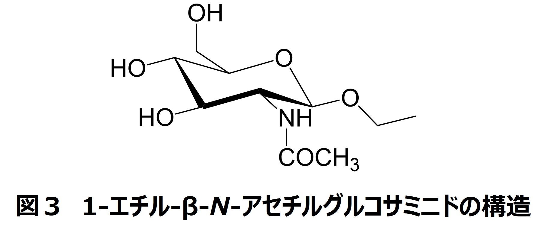 今回花王は、N-アセチルグルコサミンの構造を改変し、さらにその安定性を高めた1-エチル-β-N-アセチルグルコサミニドを新たに開発しました(図3)。