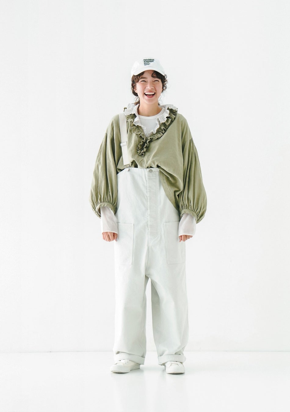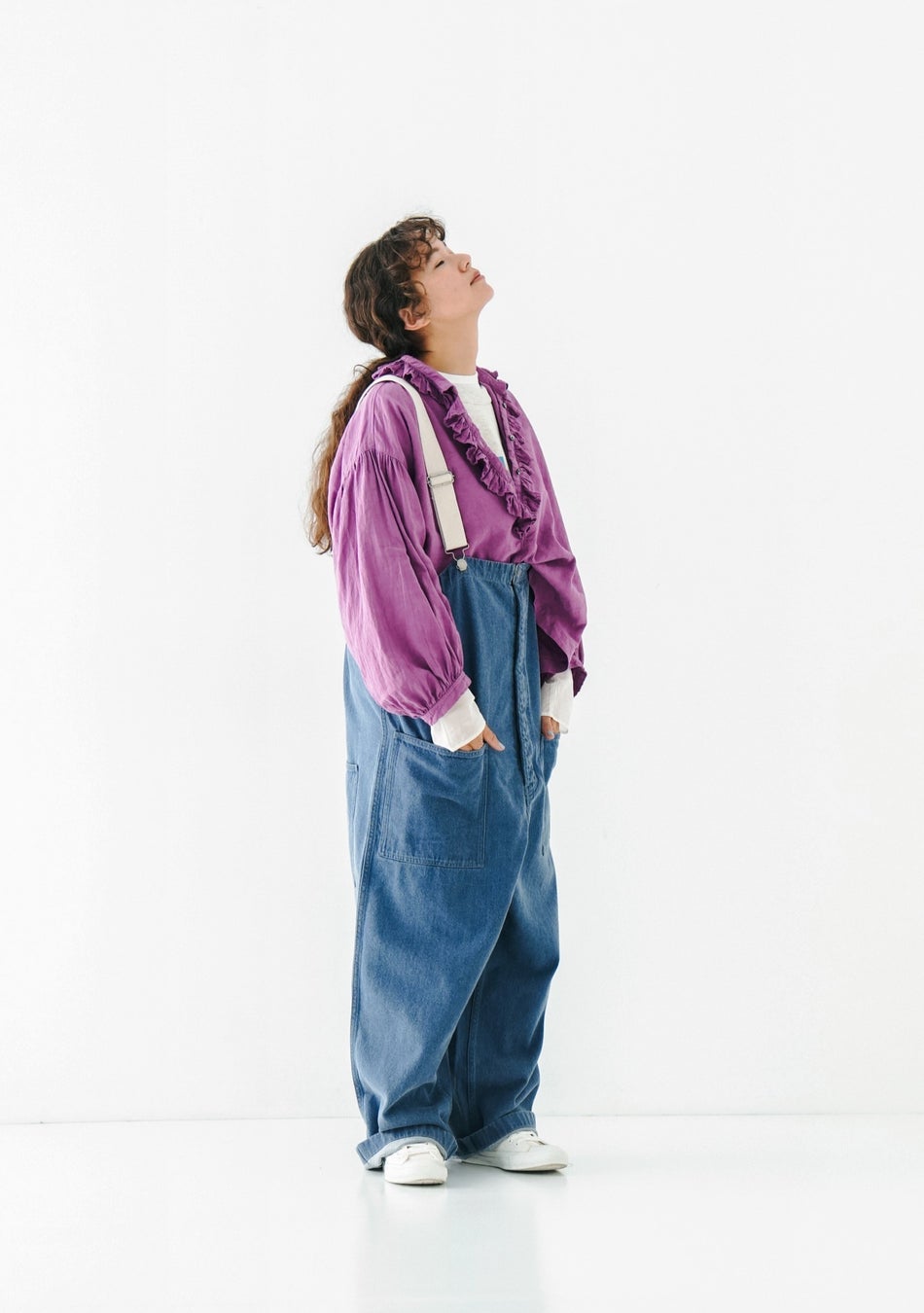 花びらのような襟元が印象的なブラウス。