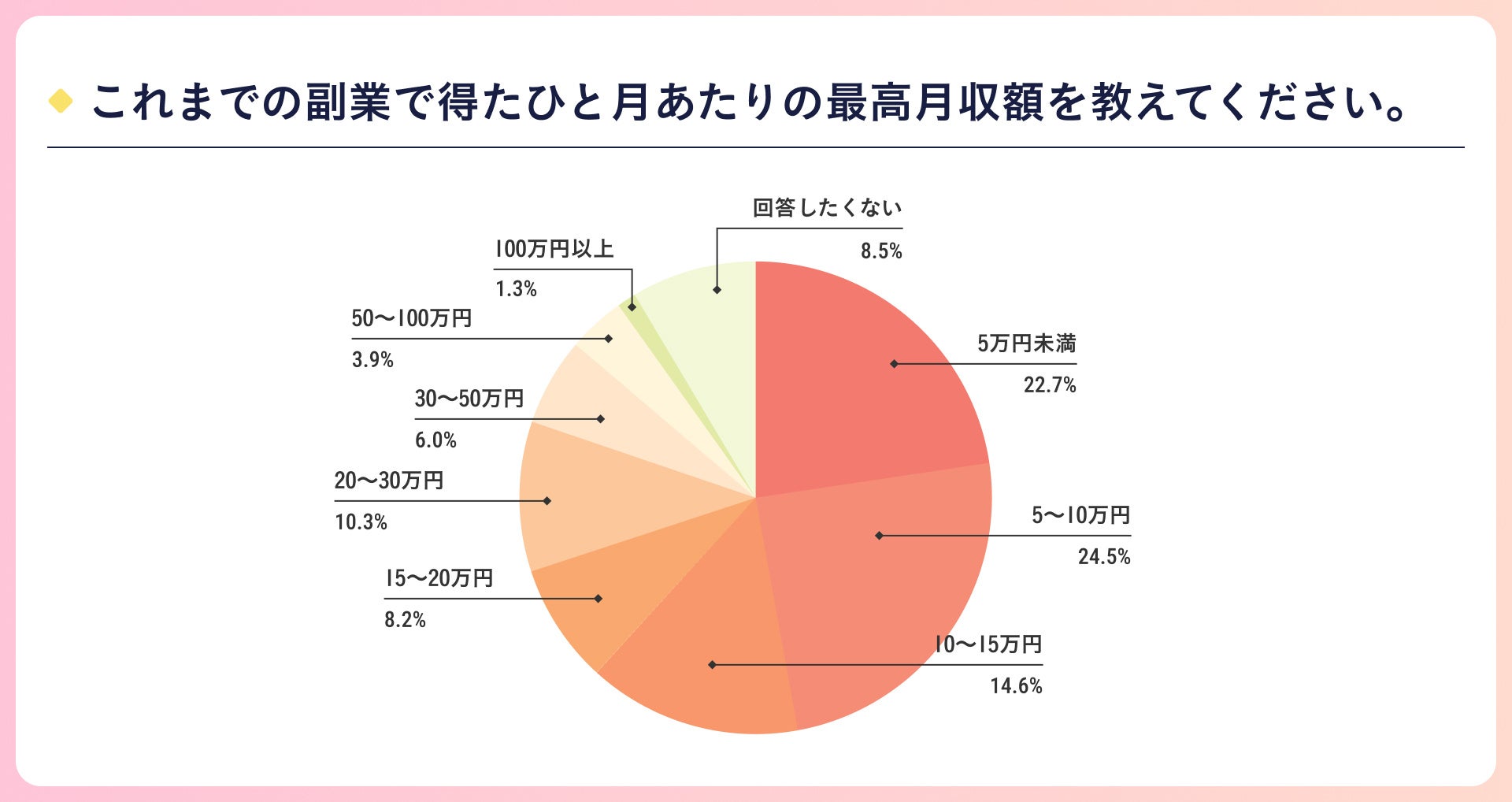 » 副業で稼いだ最高月収は“5万円以上10万円未満”が最も多い結果に