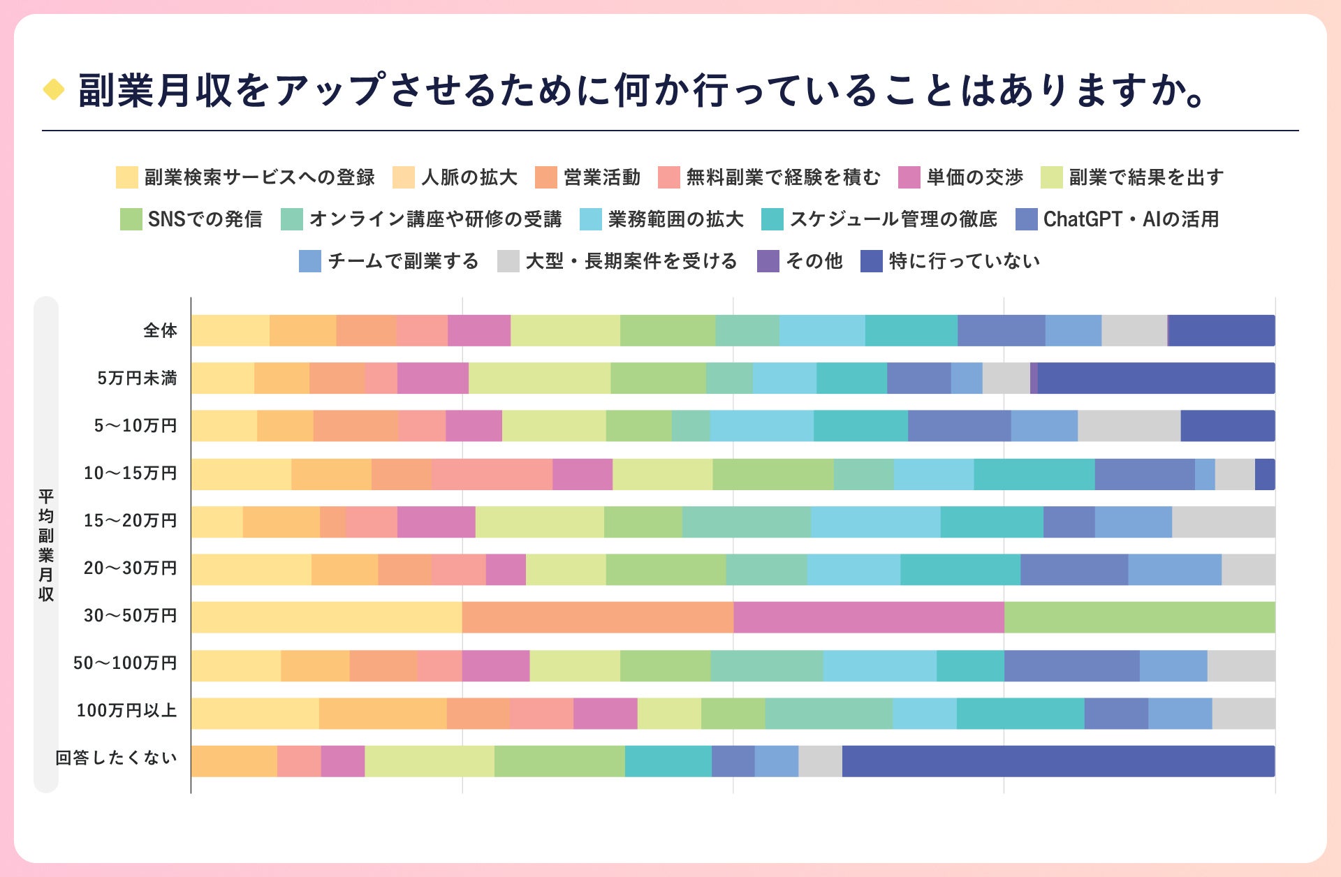 » 副業収入をアップさせるために行っていること1位は、“副業で結果を出す”
