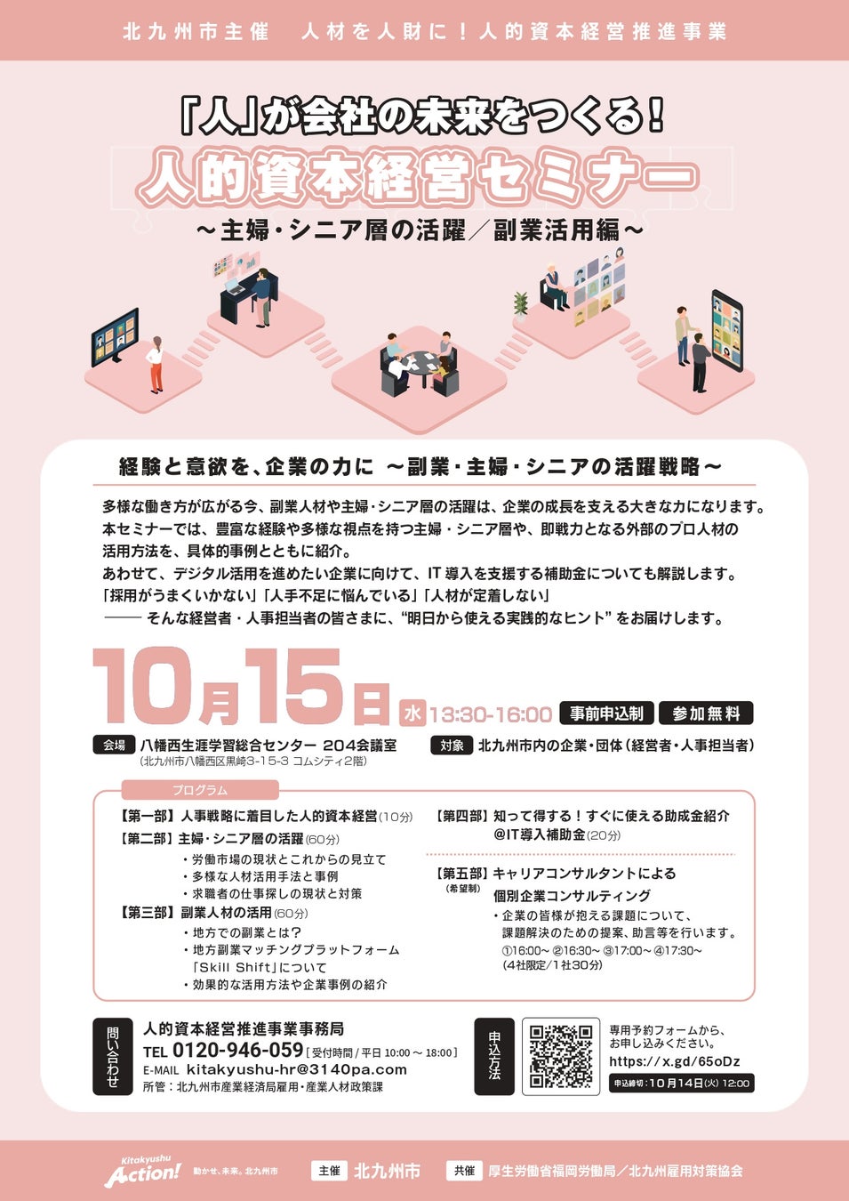 北九州市【10月15日】“経験と意欲を企業の力に ~副業・主婦・シニアの活躍戦略~” 参加企業・団体募集中!
