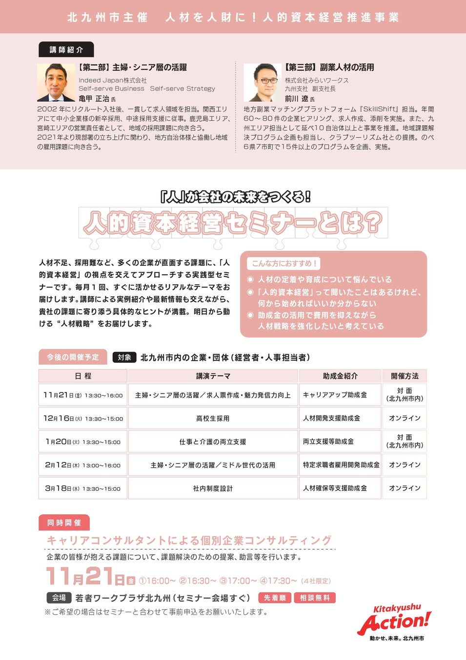 採用難・人材不足時代を乗り越えるための企業向けセミナーを北九州市で開催します。
