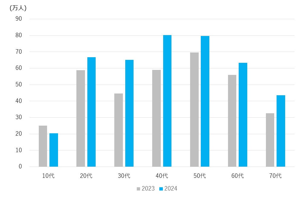 世代別にみると、20代の来場者数は昨年に続き、高い水準