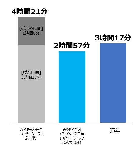 平均滞在時間は、3時間以上。試合日でも、ファイターズ主催レギュラーシーズン公式戦の試合日でも、試合外時間で1時間以上、Fビレッジに滞在しており、試合前後にも飲食やアクティビティを満喫いただいている