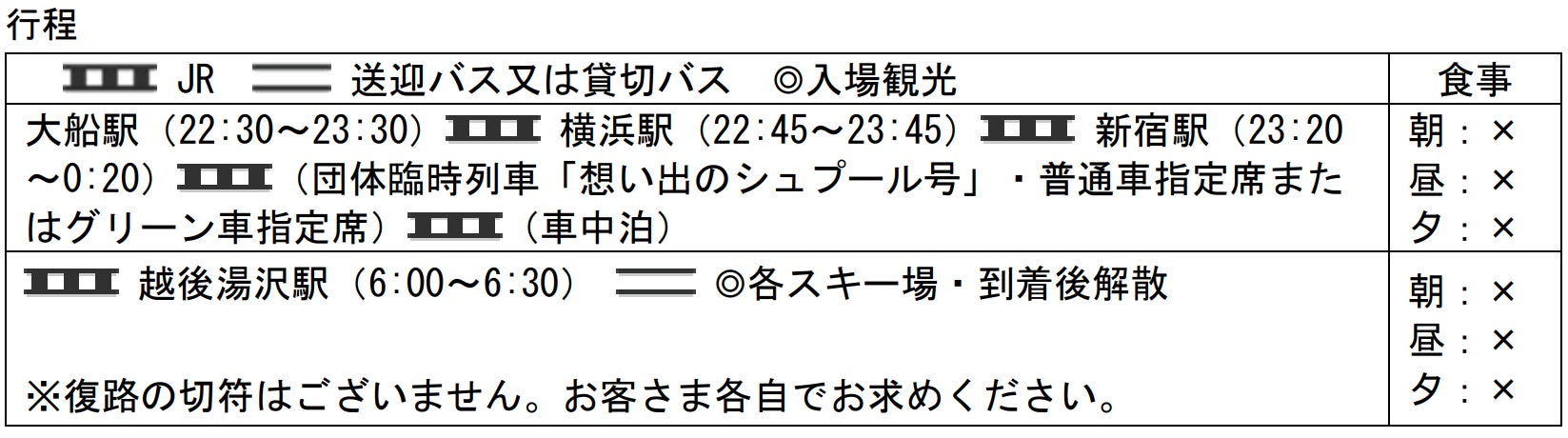 ■コース名:首都圏からスキー場まで一夜で結ぶ夜行列車 「想い出のシュプール号」