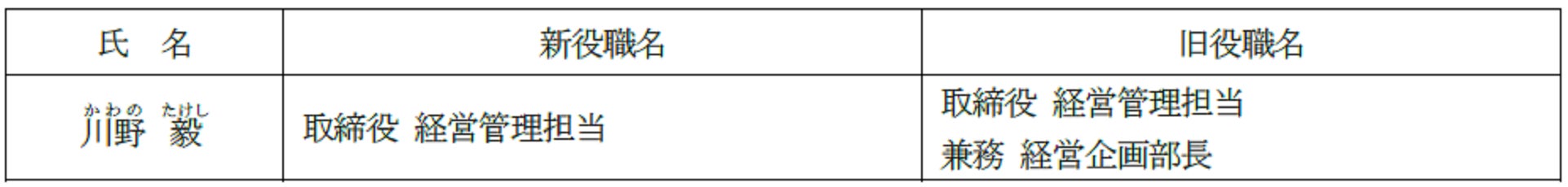 取締役の委嘱業務の変更及び人事異動に関するお知らせ