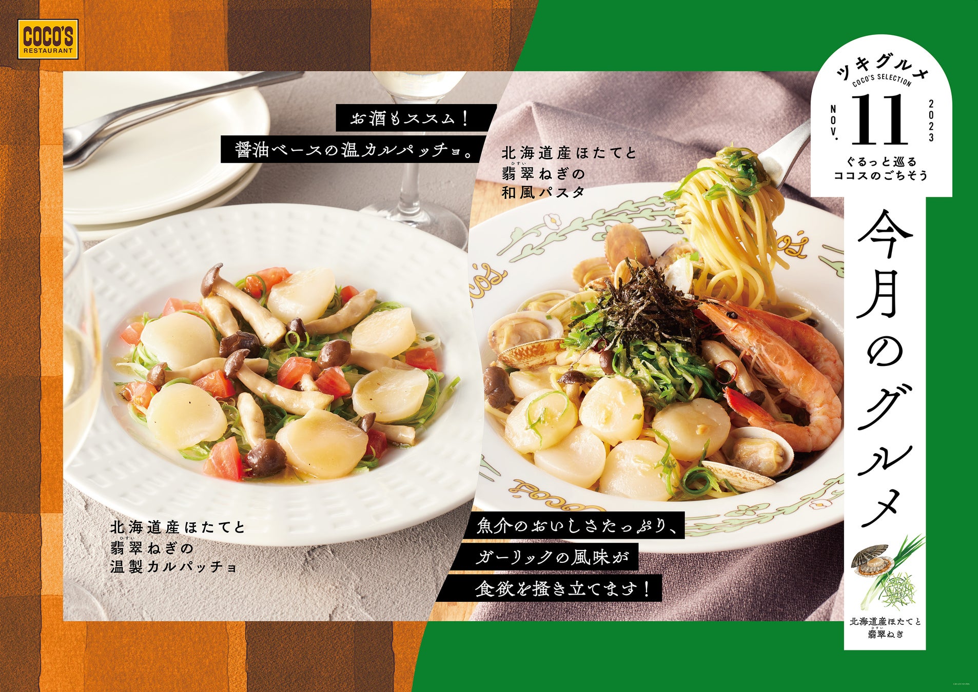【ココス】ぷりっと甘い北海道産ほたてと翡翠(ひすい)ねぎを使った11月限定メニュー「今月のグルメ~11月~」開催!
