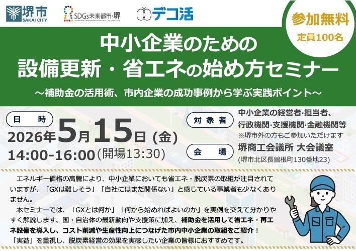 中小企業のための設備更新・省エネの始め方セミナーを開催します