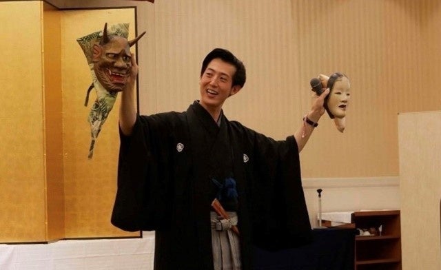 夙川能舞台瓦照苑 能楽観世流シテ方 上田宜照氏による能の体験です。ユネスコ無形文化遺産に登録されている「能」の歴史や、貴重な能面や装束のご紹介をはじめ、能に触れるのが初めての方でも親しみやすい内容です。
