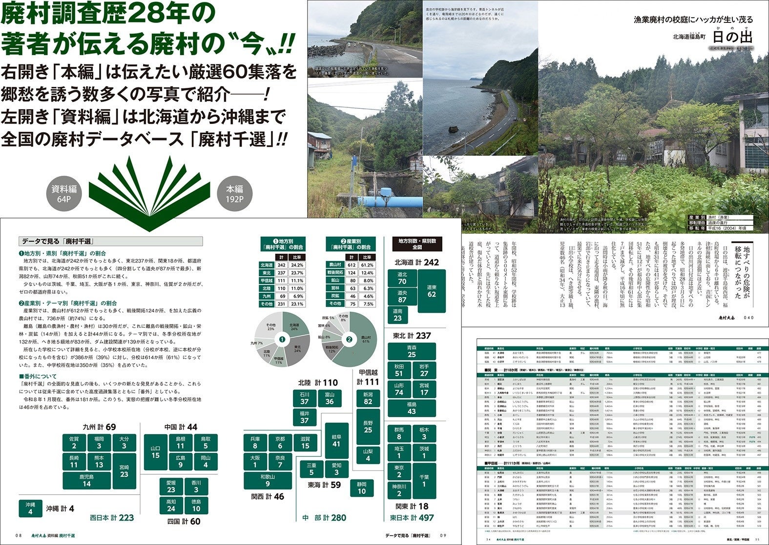 [資料編]左開き(64頁)全国の廃村データベース「廃村千選」を収録。全国の廃村1000か所をデータベース化したものは本邦初の試みです。