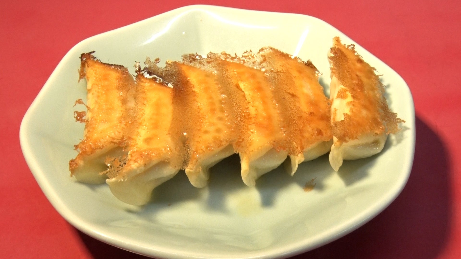 今回、最初に訪れた店は、宇都宮のソウルフード・餃子の名店。地元の大人気の支店で、焼き、揚げ、水の3パターンの餃子を堪能。まずはビールで1杯…ところが、ここで意外な事実が判明。餃子といえば…のアレがない!味わいながらも目が泳ぐ角野を、友近、礼二が目ざとくツッコむ。