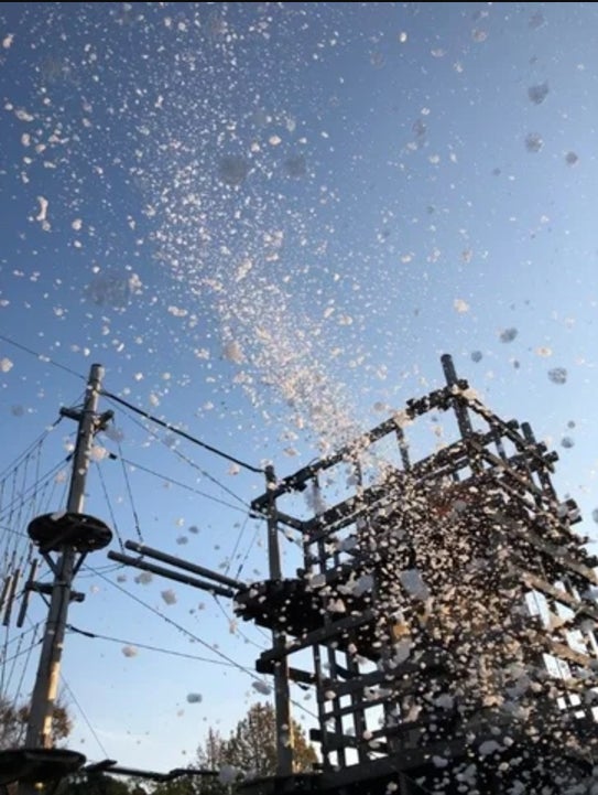 本イベントでは、雪をイメージした大量の泡がエリア内に放たれ、まるで雪が舞っているような美しい景色の中で難易度がアップしたアスレチックを体験いただけます。さらに今年は、参加者の知恵が試される謎解き問題パネルが中級・上級コースに登場!全力で体を動かしながら、頭もフル回転させてクリアを目指していただきます!見事クイズを解き明かし、アスレチックを攻略できた方には、ニジゲンノモリ限定オリジナル認定証をプレゼント。高さ8mの上空からエリア全体に雪のような泡が降り注ぐ、冬の雰囲気に染まった「クレヨンしんちゃんアドベンチャーパーク」でハラハラドキドキのアスレチックを遊びつくそう!