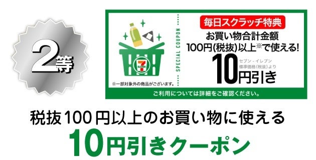 株式会社セブン‐イレブン・ジャパン(本社:東京都千代田区、代表取締役社長:阿久津 知洋)は、セブン‐イレブンアプリ会員限定「スクラッチくじ」を8月1日(金)〜8月10日(日)の期間限定で開催します。