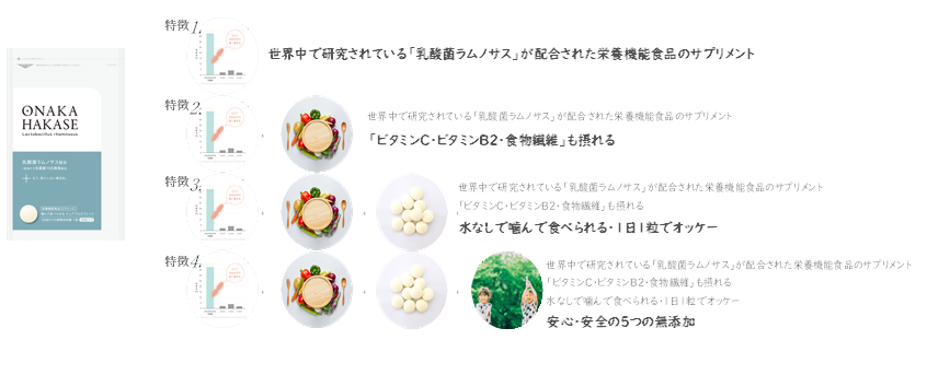 弊社が企画開発し発売した乳酸菌サプリ「おなかはかせ」の特長を提示し価格を調査