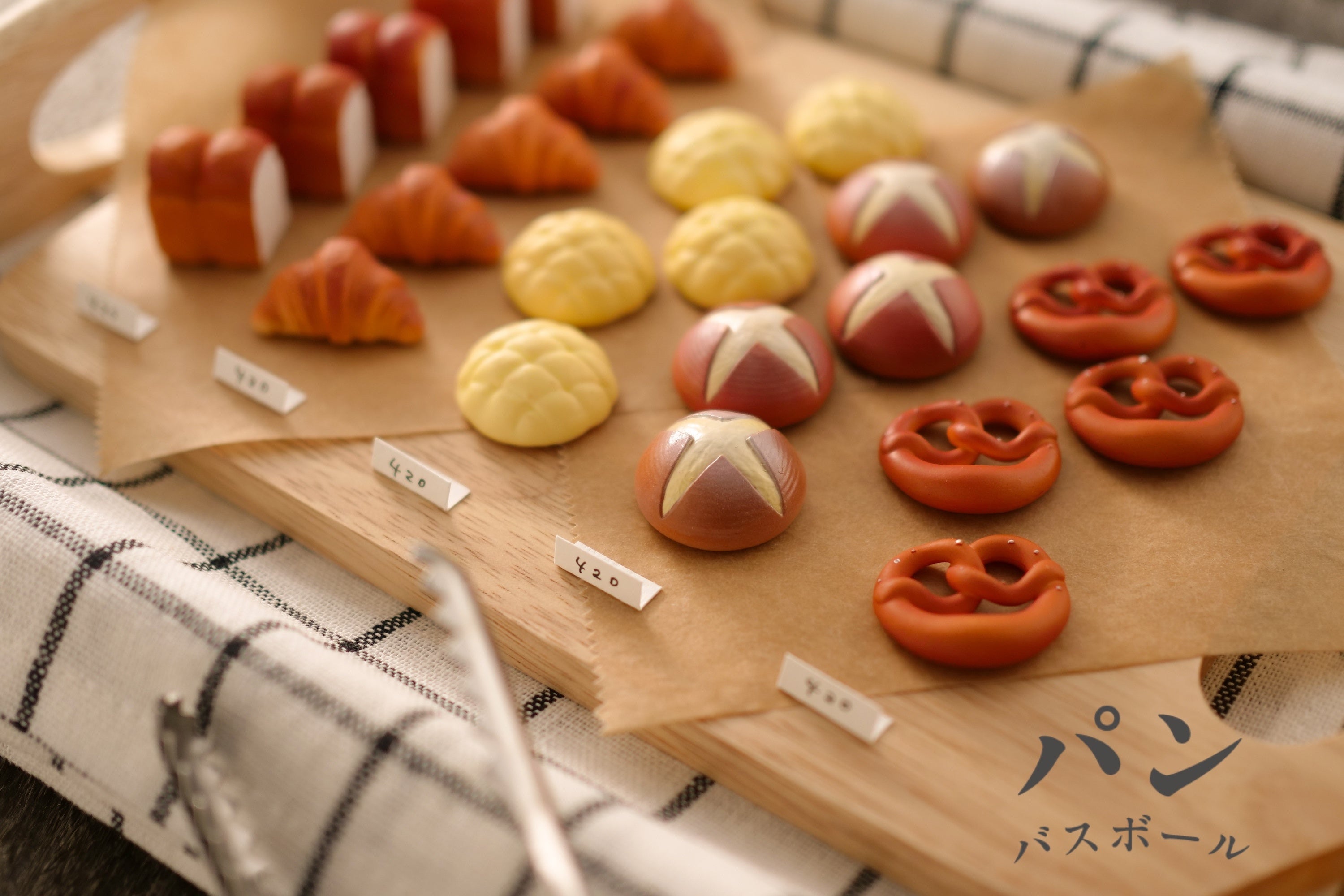 これまでに「おにぎり」「パン」「おでん」「和菓子」「洋菓子」をマスコットにしたバスボールを発売してきました。