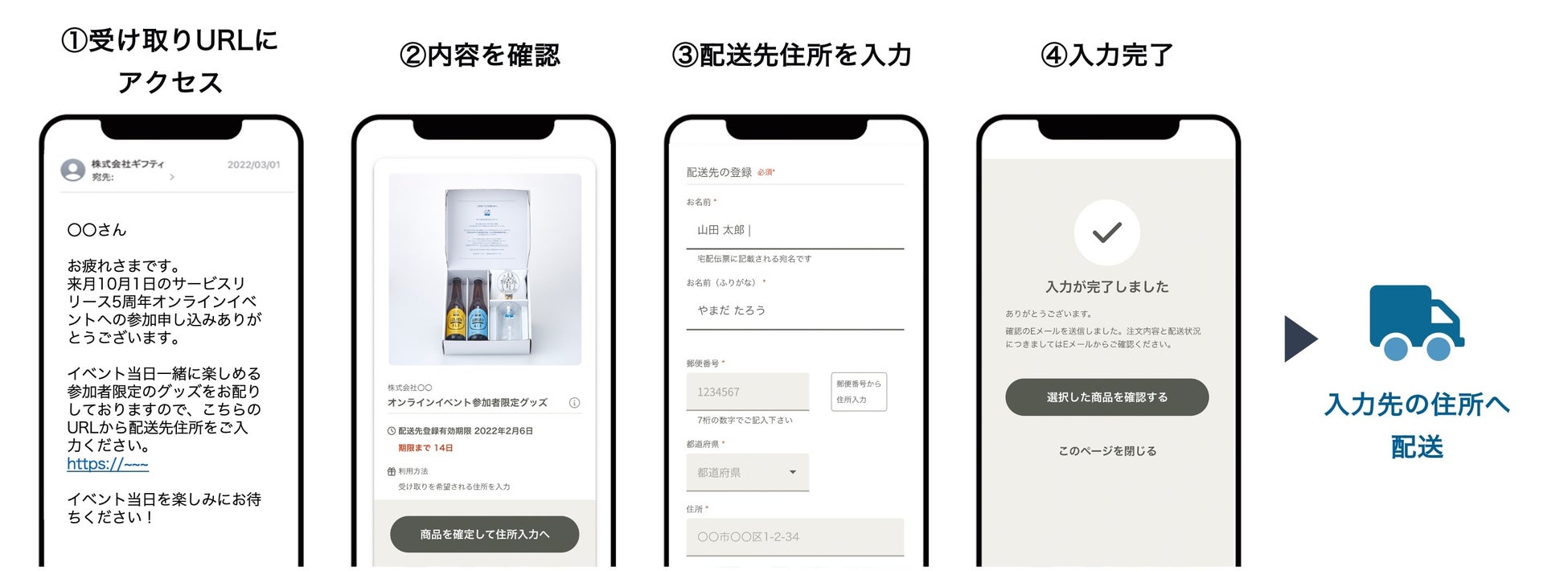 (※5) ギフティ配送管理サービスとは、オリジナルギフトカードやグッズを顧客や従業員が指定した住所へ発送することが可能なソリューションです。受け取り手の住所がわからなくともギフトを贈ることができます