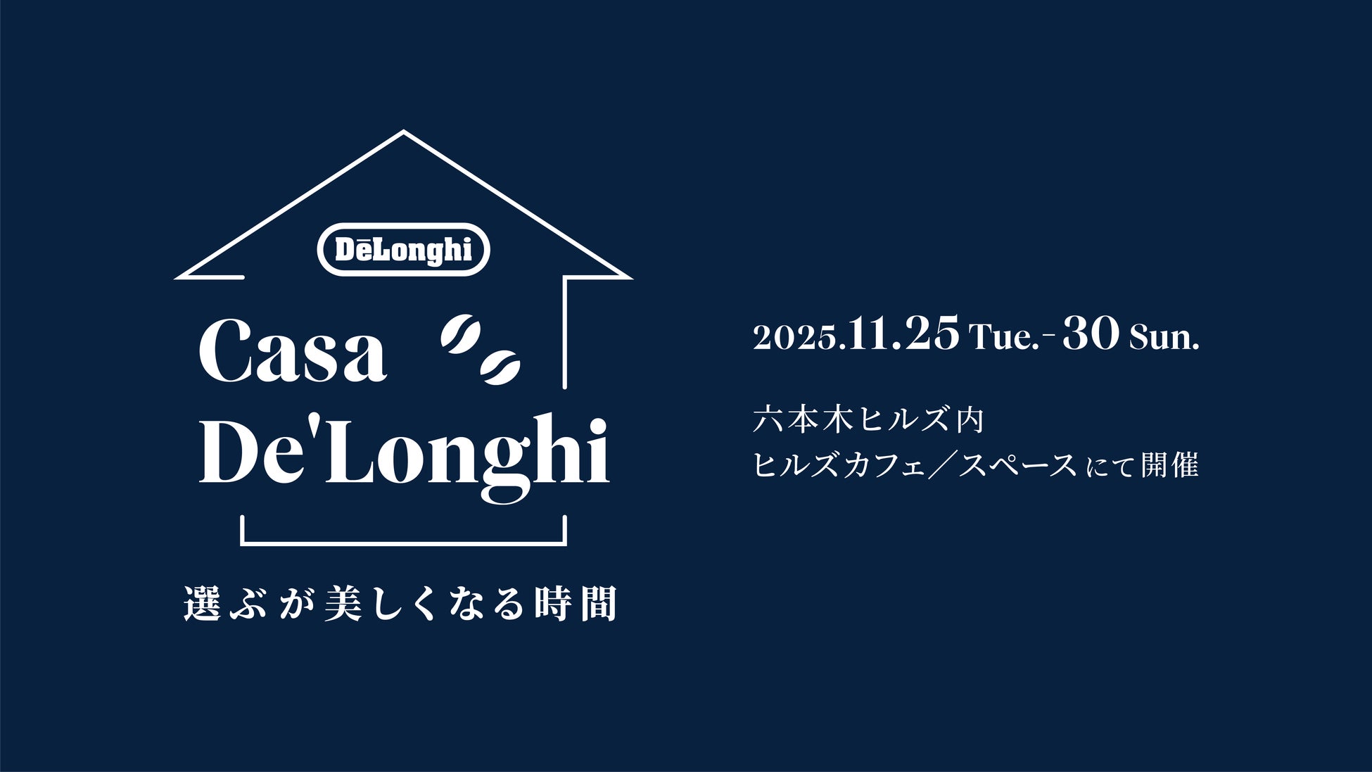 デロンギ・ジャパン株式会社(本社:東京都港区 代表取締役社長:甲斐ラース)は、デロンギブランドが展開する全自動コーヒーマシンをはじめマルチダイナミックヒーターの魅力を見て・触れて・味わって・選ぶ体験ができるポップアップイベント「Casa De’Longhi(カーサ デロンギ)」を、2025年11月25日(火)~30日(日)の6日間限定で、六本木ヒルズカフェ/スペースにて開催いたします。