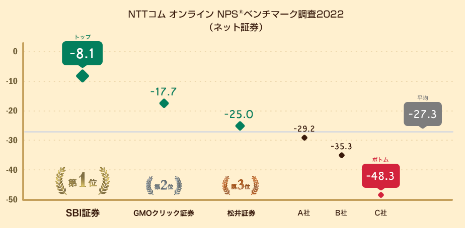 NTTコム オンライン、ネット証券を対象にしたNPS®ベンチマーク調査2022の結果を発表。NPS1位はSBI証券