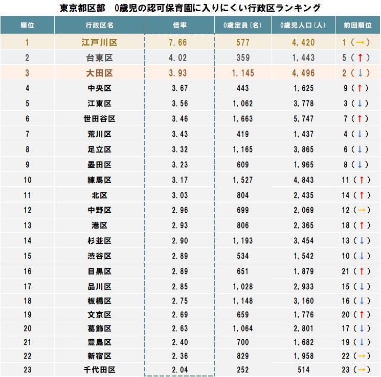 ■台東区は、0歳児人口が前年に比べ12.9%増加したため、ワースト2位へランクイン