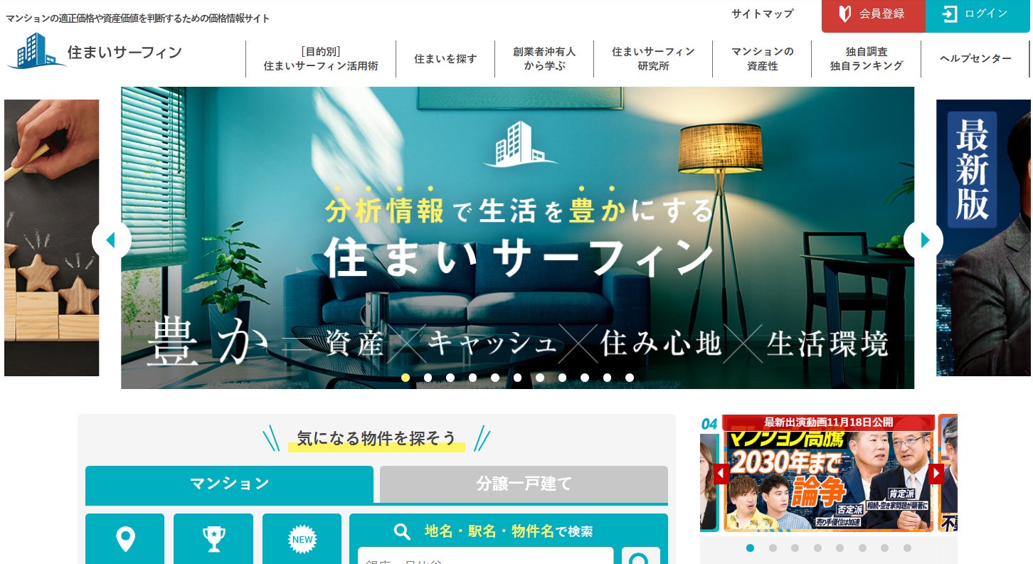 ベストセラーとなった「マンションは10年で買い換えなさい」の著者でもある「沖有人」が主催するマンションの無料会員制セカンドオピニオンサイト。2004年より会員制に移行し、マンションの売買をする時に知りたい情報を”見える化”し、購入・売却検討者が知ることが難しかった不動産情報を得られる。マンションの査定価格・相場情報と会員の物件評価・沖有人自らによる動画など豊富なコンテンツを持つ。