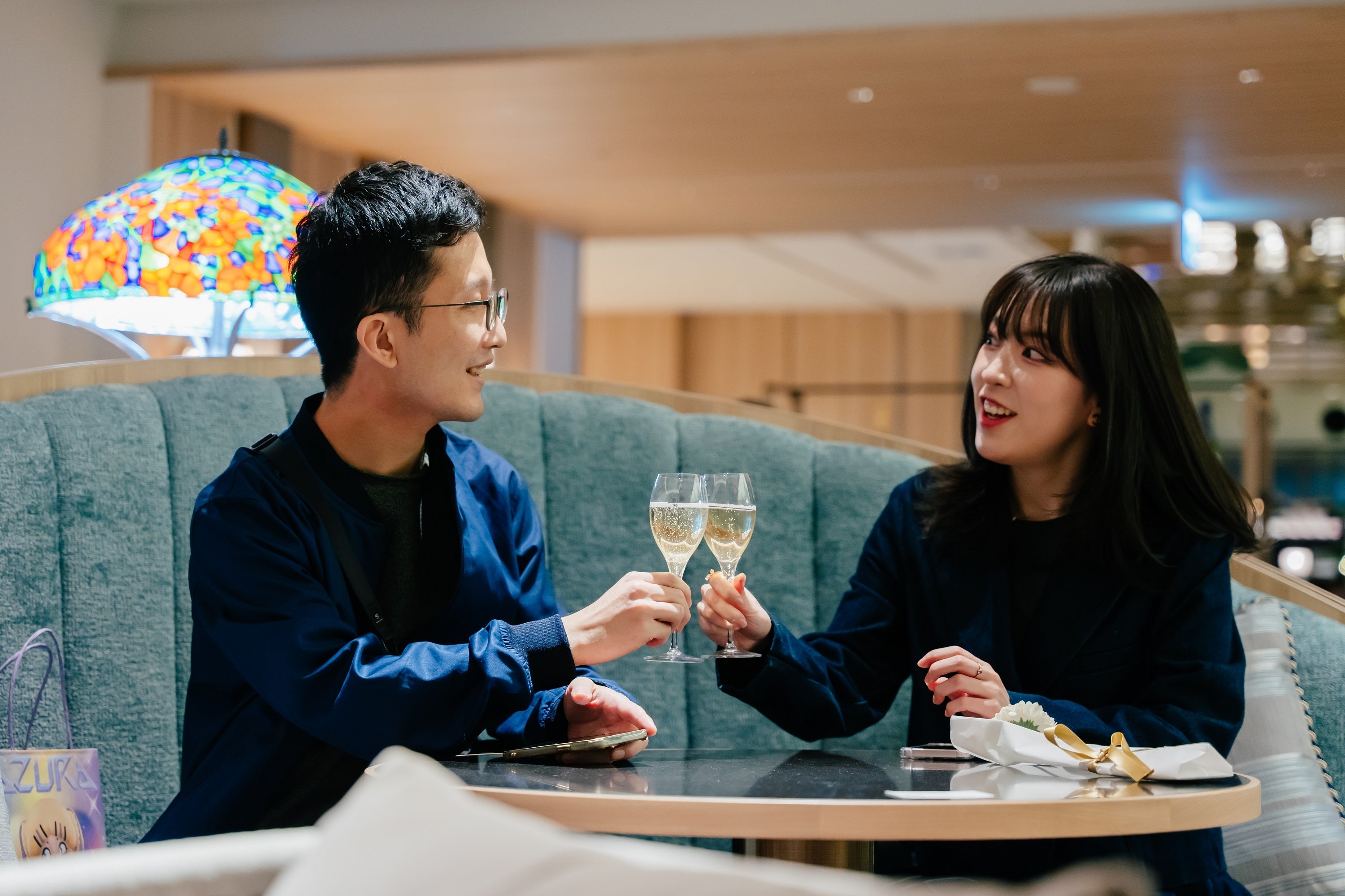「シャンパンバー」では、ミッション達成を記念してシャンパンで乾杯。これからどんなご夫妻・家族になりたいかを語り合いながら、ラウンジでゆっくりお過ごしいただきました。