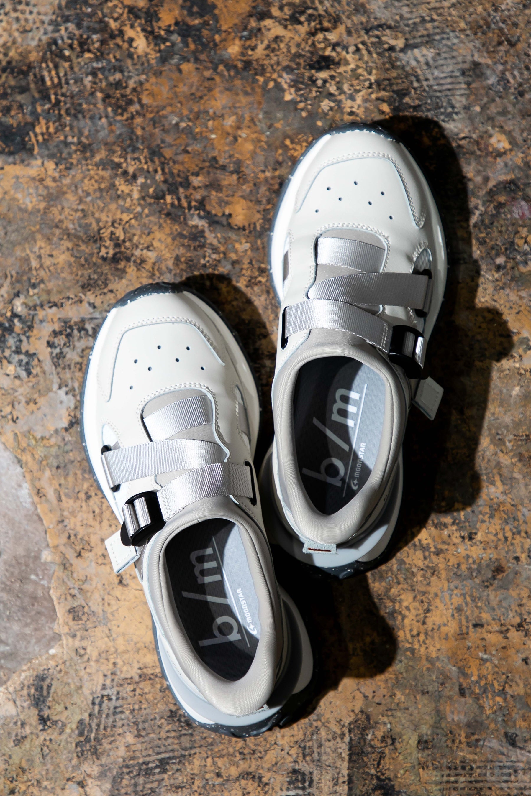ブランド名である「b/m(ビーエム)」は「borderless(ボーダーレス)」「moonstar(ムーンスター)」が由来となっています。「そのときの自分の居場所により良い快適さと遊び心を。」をテーマに、性別や年齢、暮らしや働き方に捉われず、日々変わりゆく常識と多様性の広がる社会に適応したプロダクトを提案するブランドです。アッパーやソールには再利用された素材を採用し、環境に配慮した設計も特徴です。また持続可能な社会の発展に貢献するため、地球に優しいスニーカーを目指し、SDGsへの貢献に繋がる活動を実施しています。最近では2025年3月に途上国の子ども達へ運動靴を寄付しました。